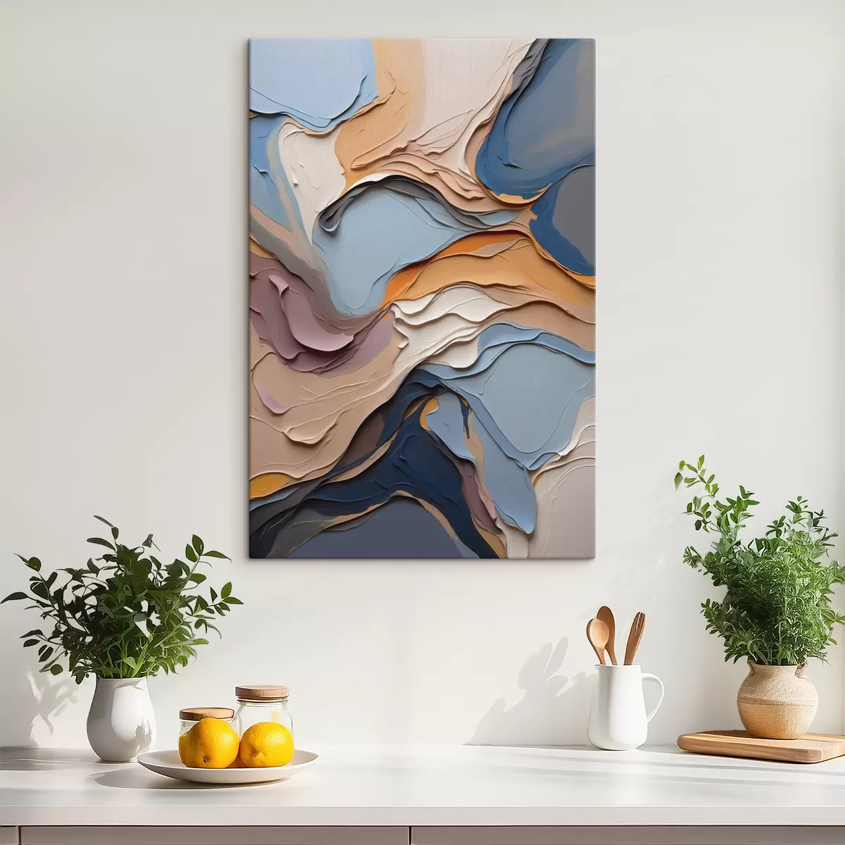 Het schilderij kan direct na ontvangst worden opgehangen. Het schilderij wordt opgespannen op een 2 cm breed houten spieraam.