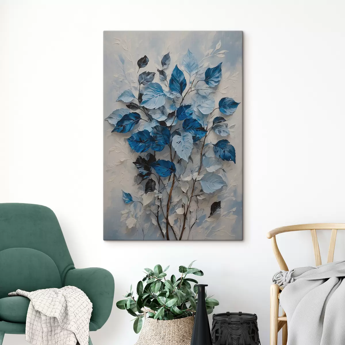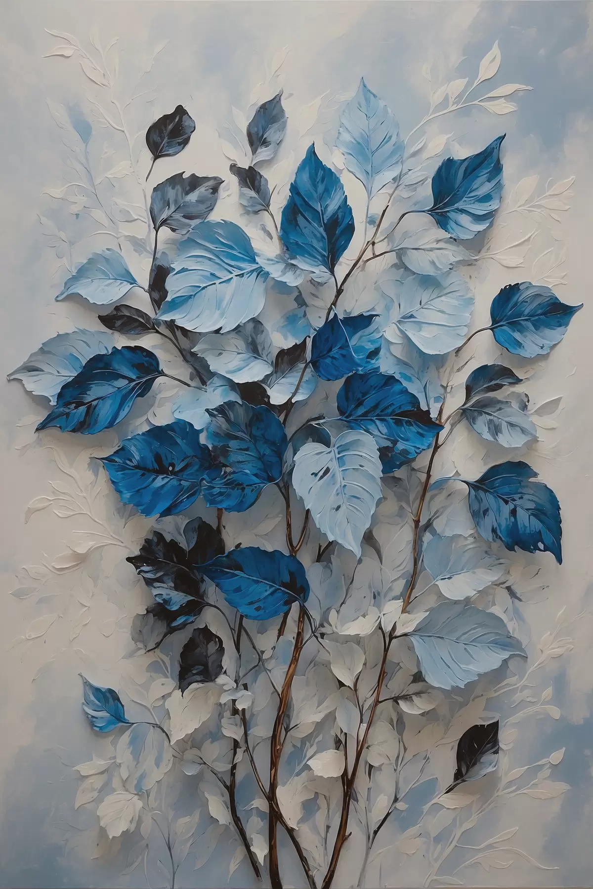 Schilderij Plant met witte en blauwe bladeren Art. s39156