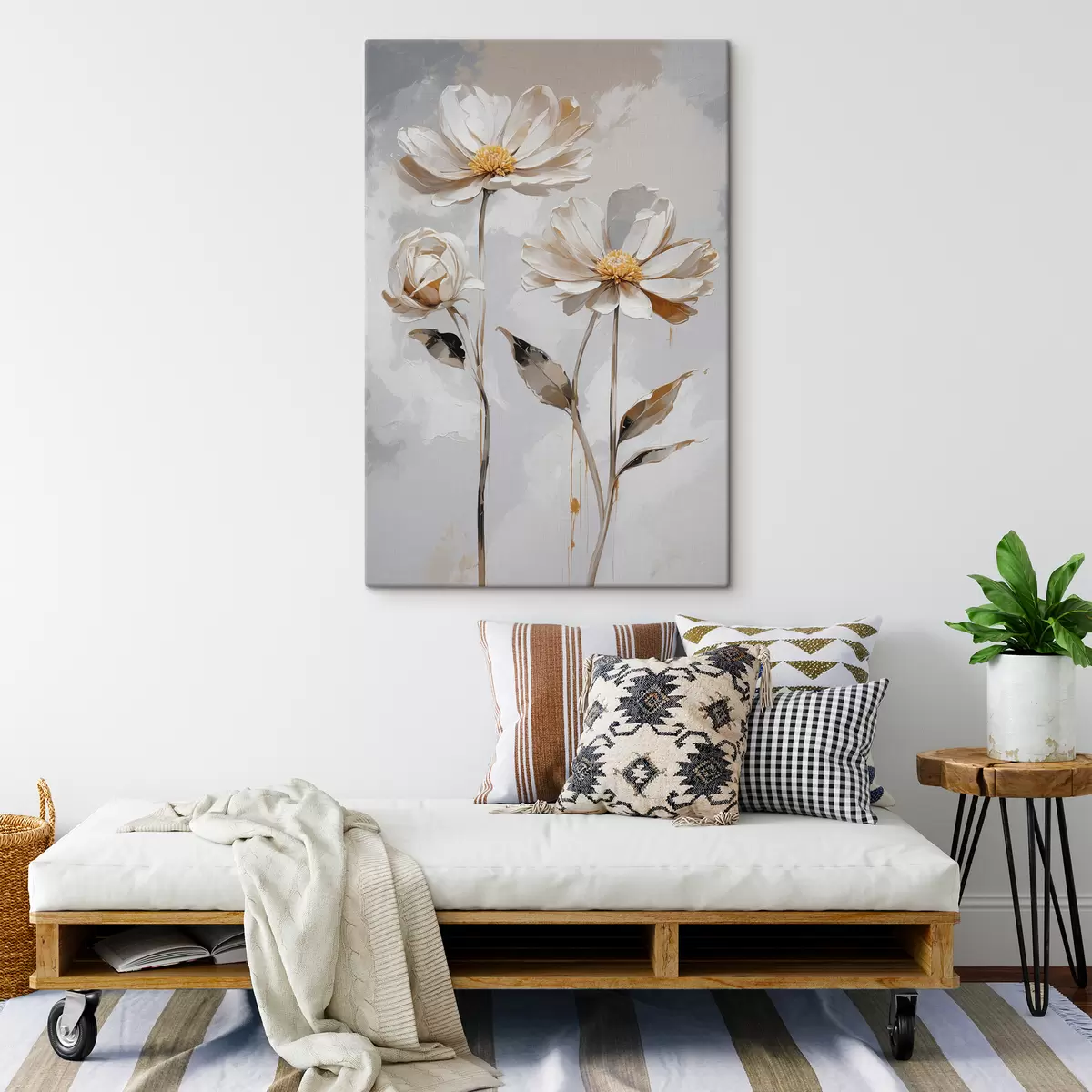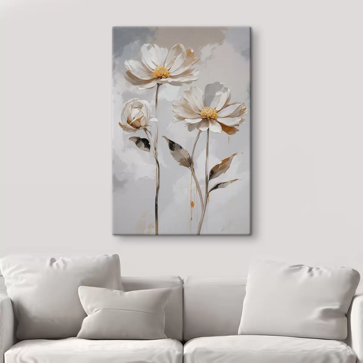 Schilderijen Witte bloemen op witgrijze achtergrond s39174