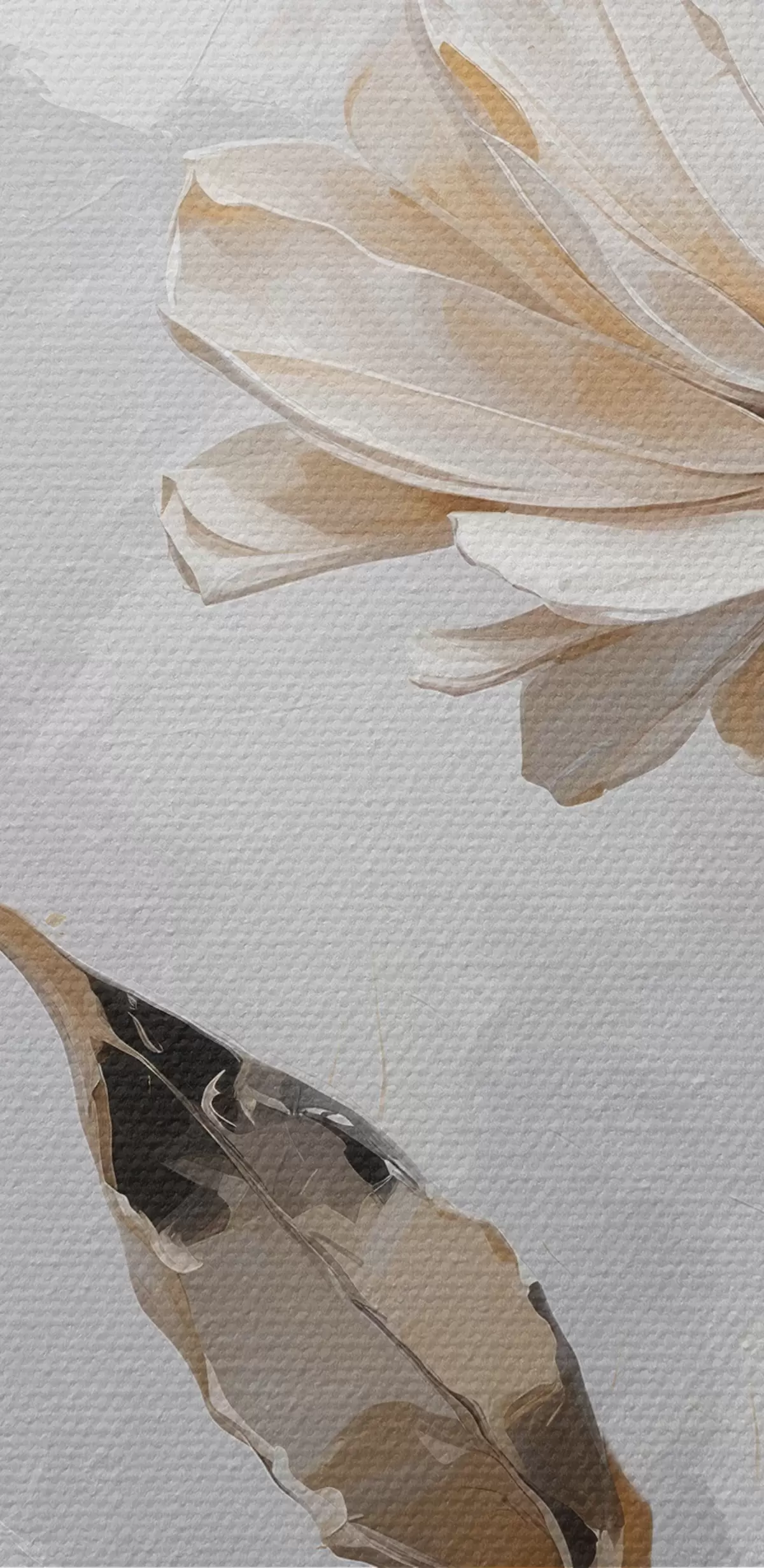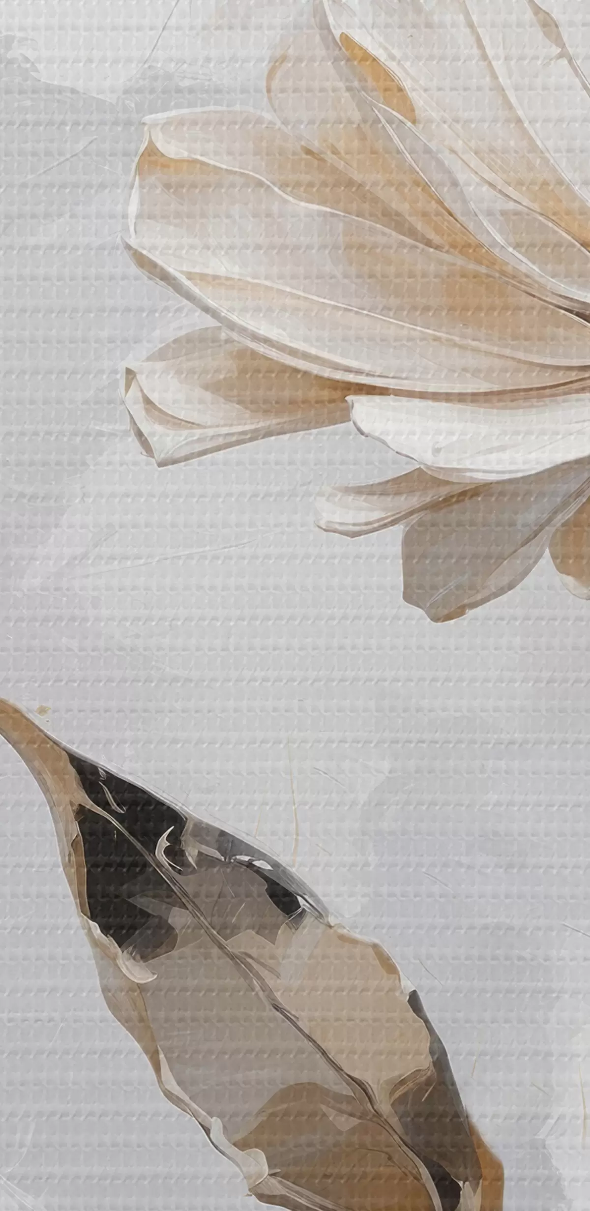 Schilderij Witte bloemen op witgrijze achtergrond Art. s39174
