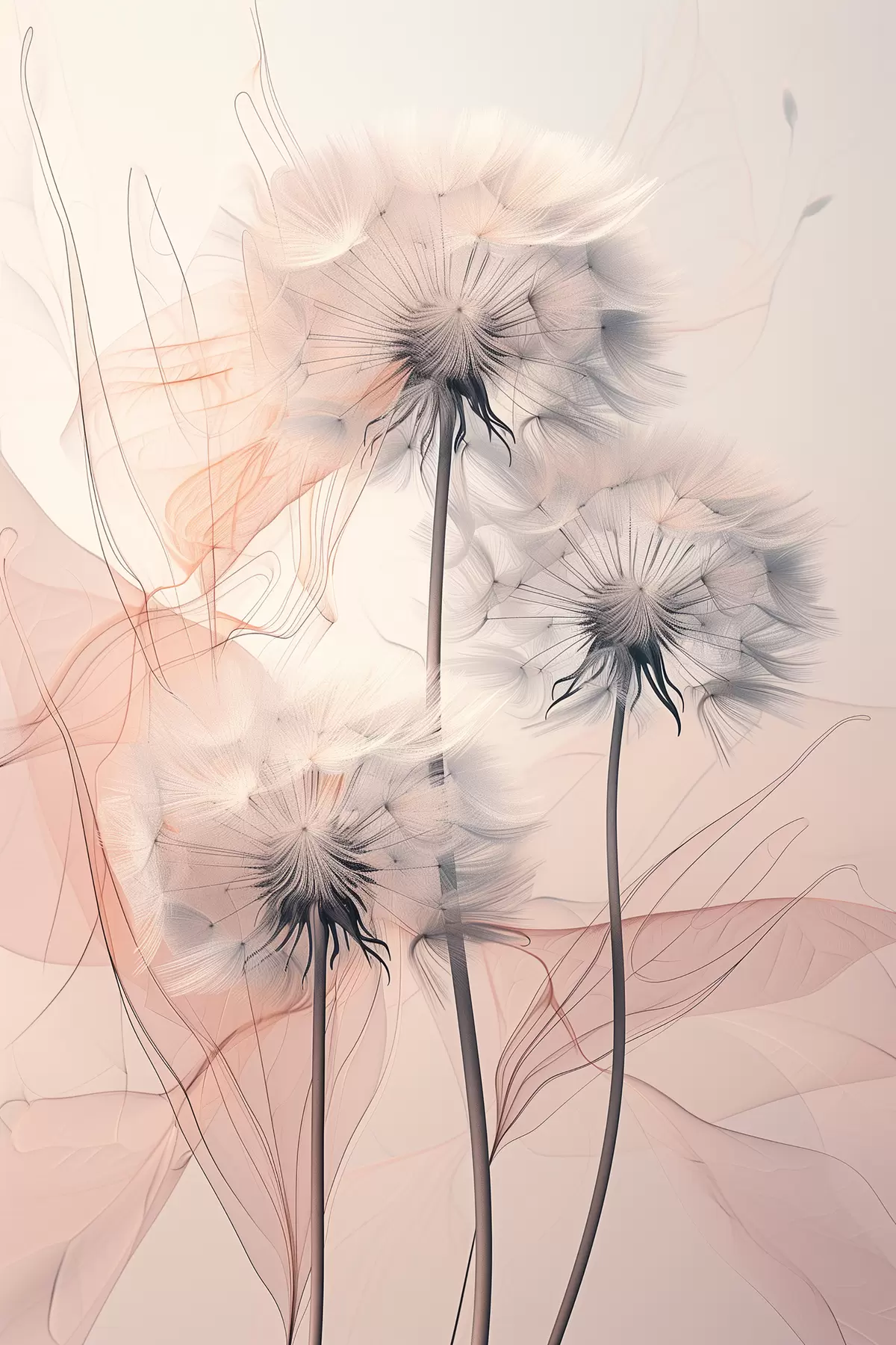 Schilderij Gevoelige paardebloemen op een abstracte achtergrond Art. s39199
