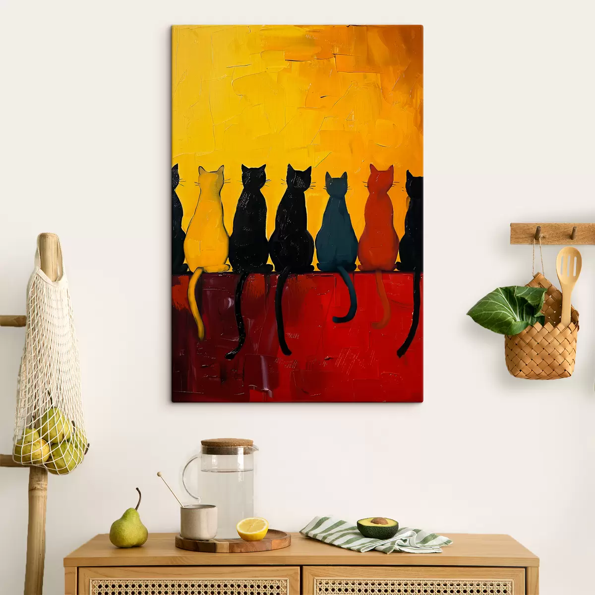Je kunt het schilderij ophangen aan schroeven. Hiervoor leveren we bevestigingen bij onze foto's, zodat je de foto gemakkelijk kunt ophangen.