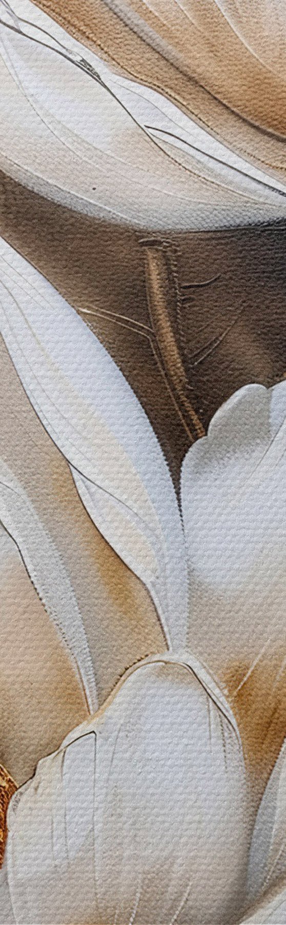 Er zijn drie soorten materiaal te bestellen: Economic Canvas - een dicht en duurzaam materiaal voor digitaal printen, identiek aan schildersdoek, waterdicht oppervlak, realistische weergave van details, materiaal met gemiddelde korrel. Premium Canvas - de textuur lijkt op die van schildersdoek (verweven kleine draden). Zachte, gedetailleerde reproductie van de afbeelding op een mat oppervlak. Eco-Premium - hoogwaardige 100% katoenen stof. Dankzij de natuurlijke katoenvezels is het materiaal duurzaam en slijtvast. Uitstekende kleurweergave en detail.