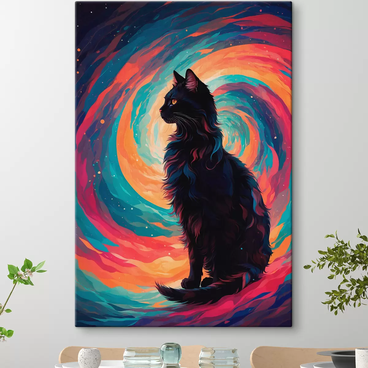 Schilderij Zwarte kat op ruimteachtergrond Art. s39370