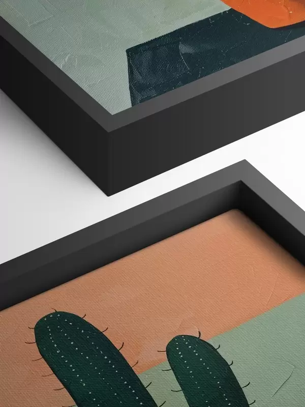 Schilderij Een minimalistisch schilderij van een enkele cactus met bloemen in een krachtig kleurenpalet. Art. s39452