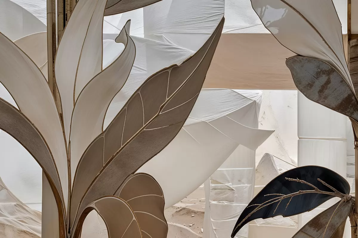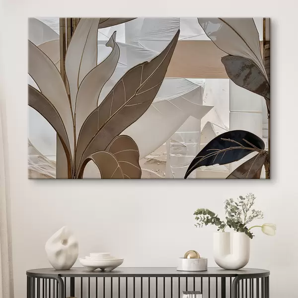 Schilderij Een close-up van een abstract geometrisch patroon met overlappende vormen en texturen in beige tinten Art. s39498