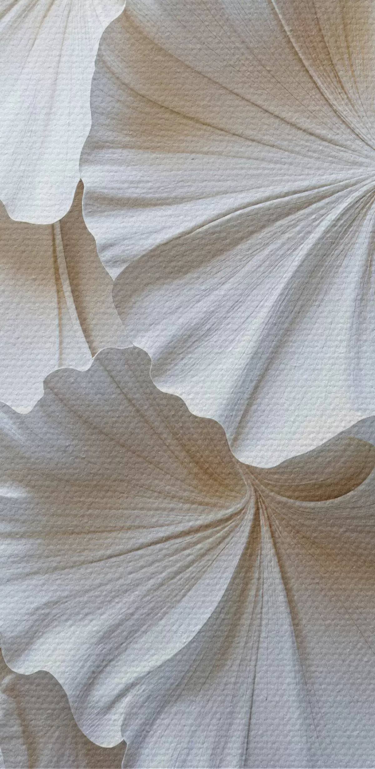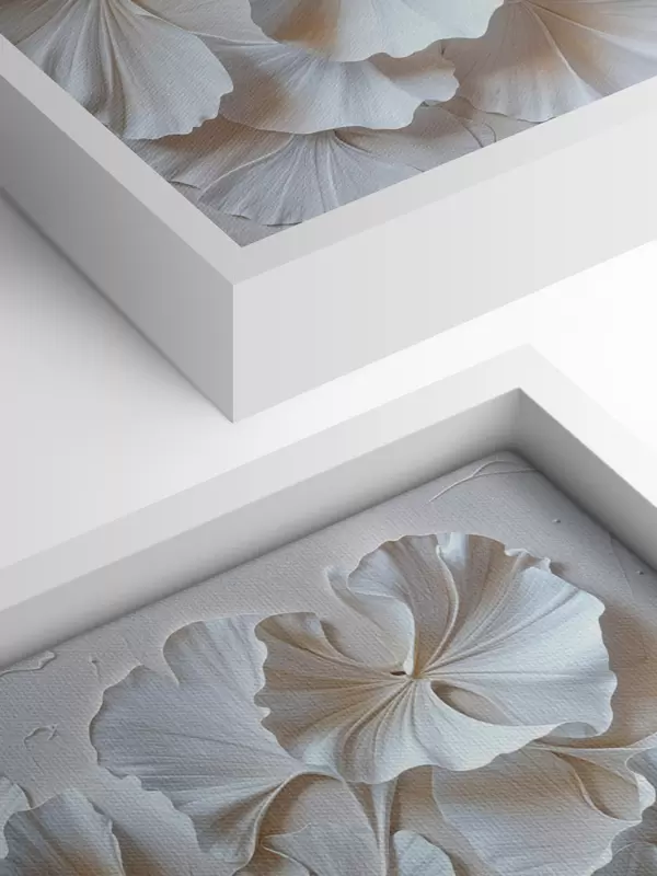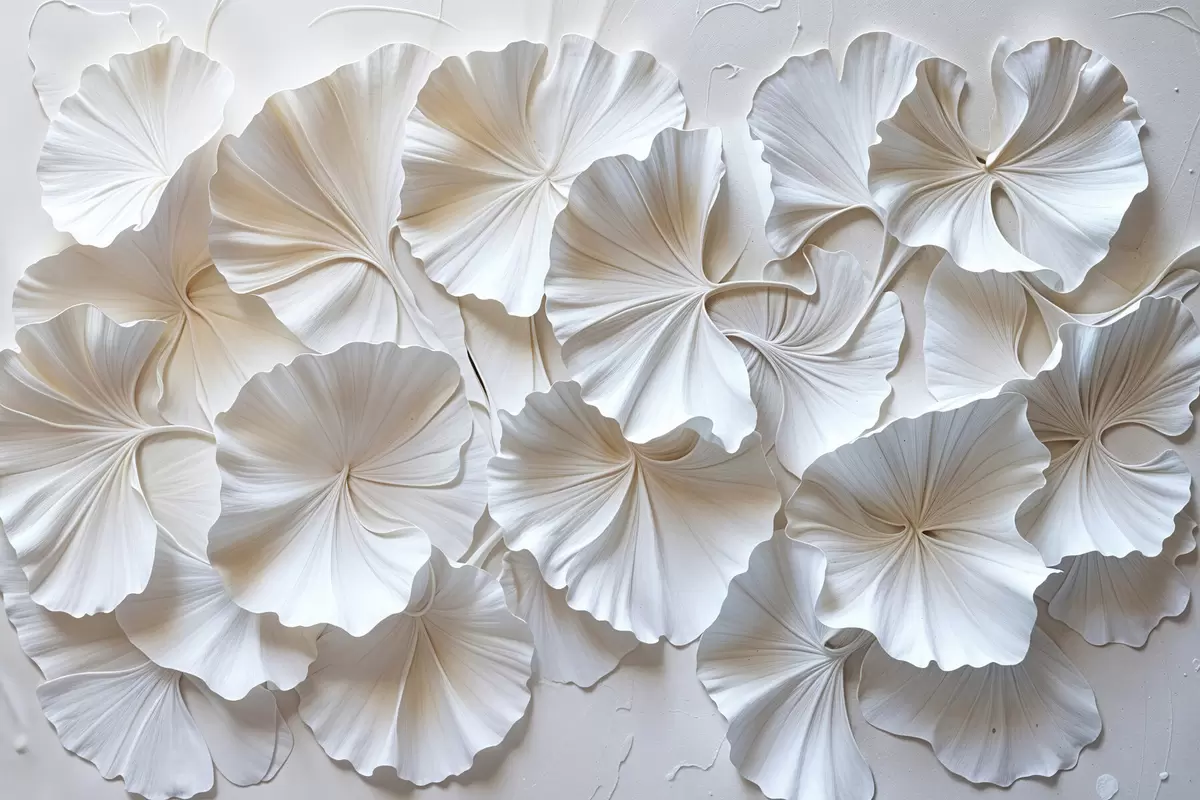 Schilderij Fijne witte bloemen gerangschikt in een natuurlijk, organisch patroon op een lichte achtergrond Art. s39510