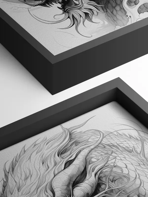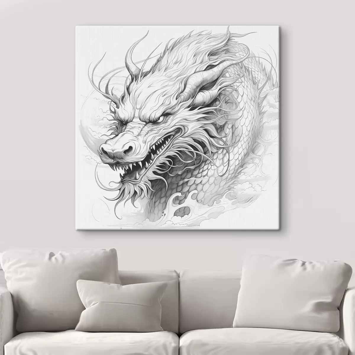Schilderij Chinese stijl draak lijntekening monochroom Art. s39563