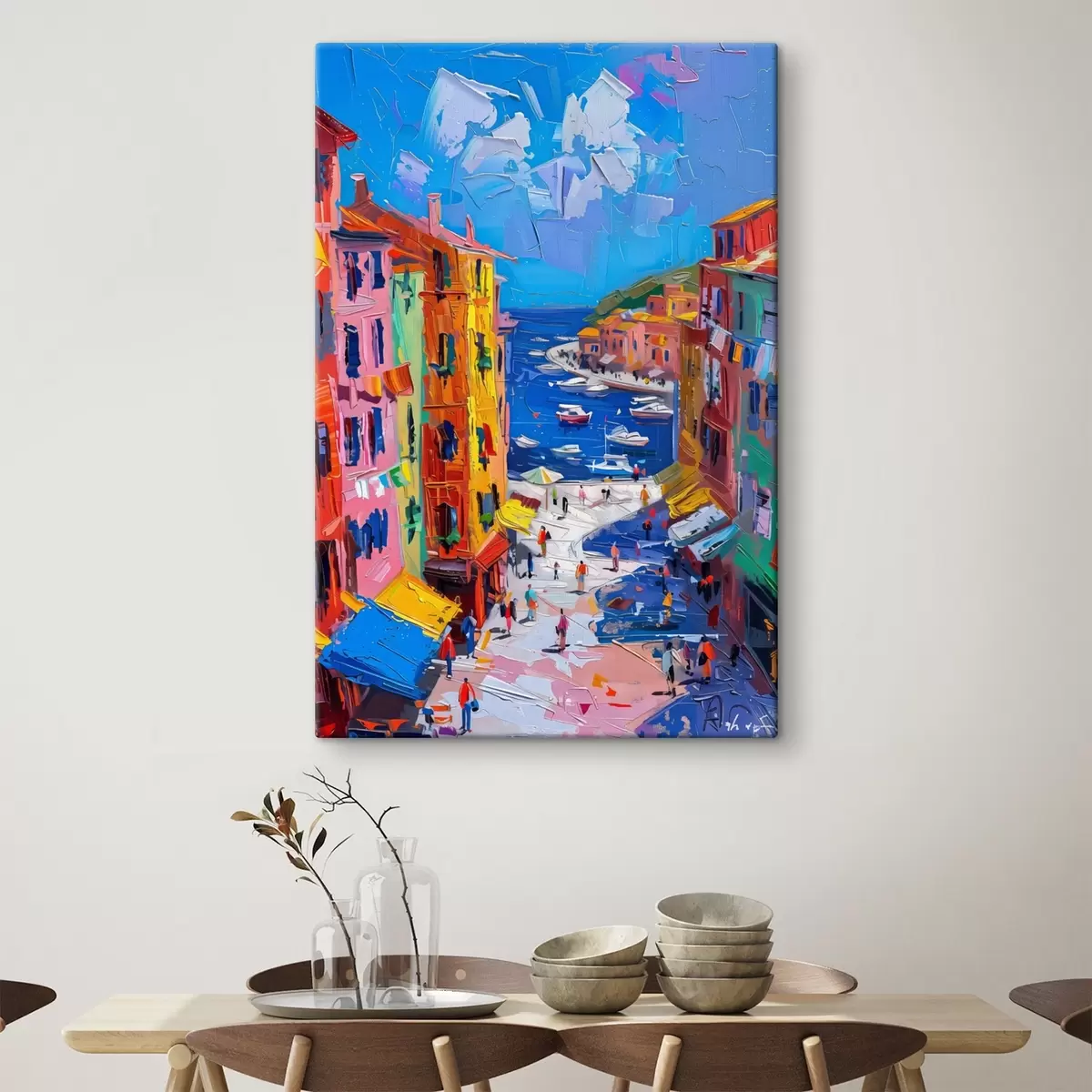 Vernis zorgt voor een extra beschermlaag op het canvas. Het schilderij zal beter bestand zijn tegen kleine beschadigingen en om het geverniste schilderij op te frissen, kun je het afnemen met een zachte, licht vochtige doek.