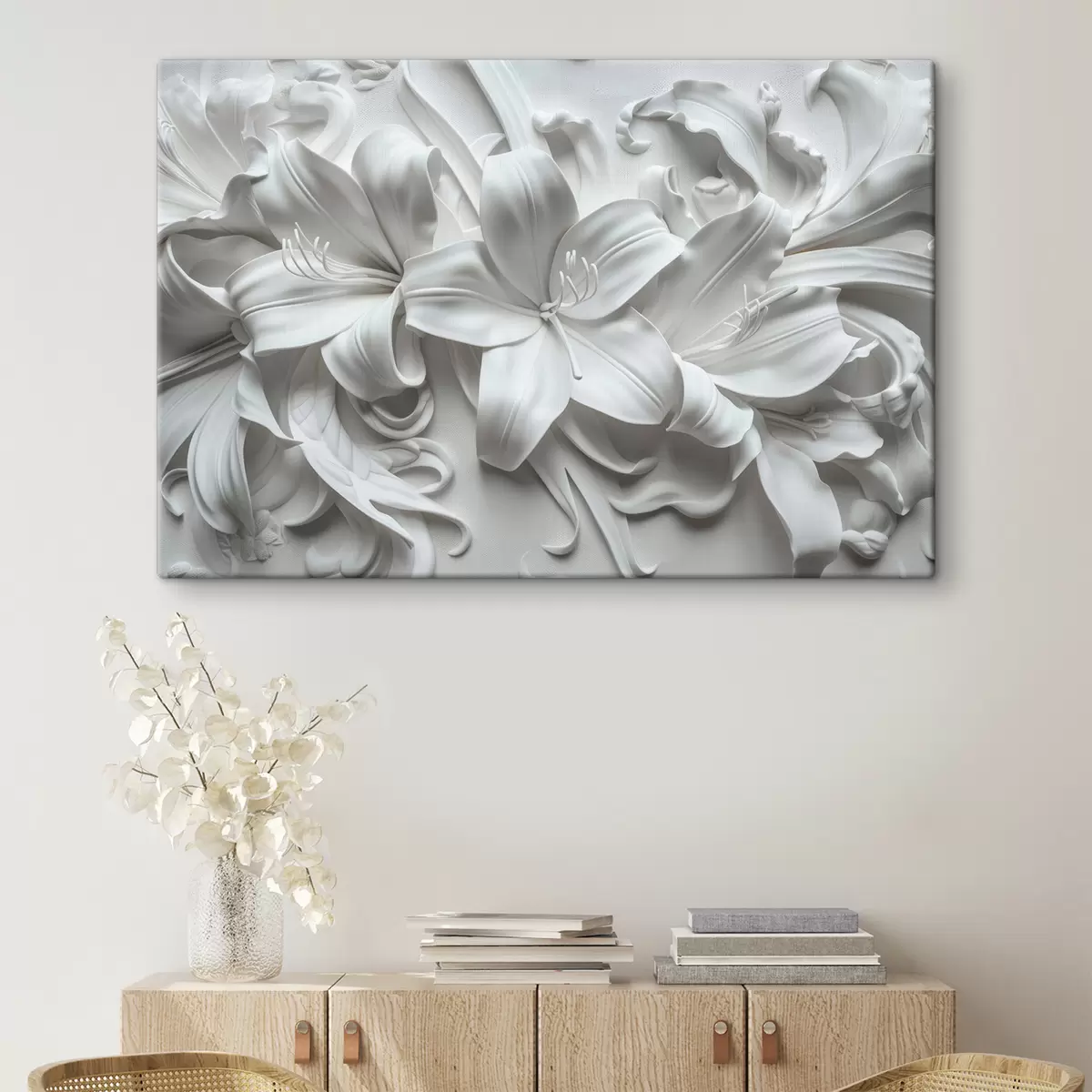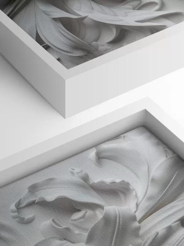 Schilderij Wit 3D-reliëf van gebeeldhouwde lelies Art. s39654