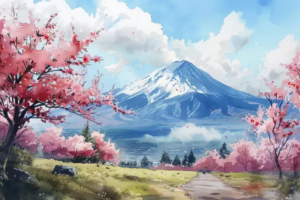 Schilderijen Berg Fuji landschap, lente bloeiende natuur, kersenbomen, Japans s39777