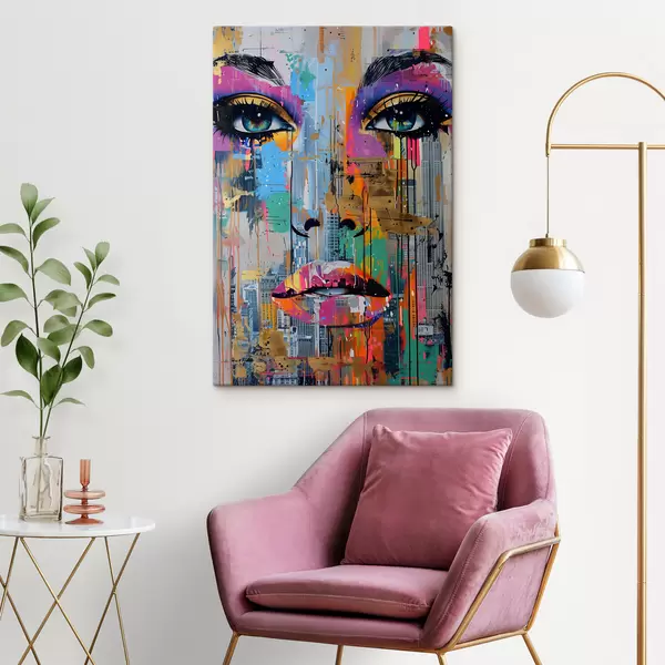 Schilderijen Blauwe ogen en uitzicht op de stad s39800