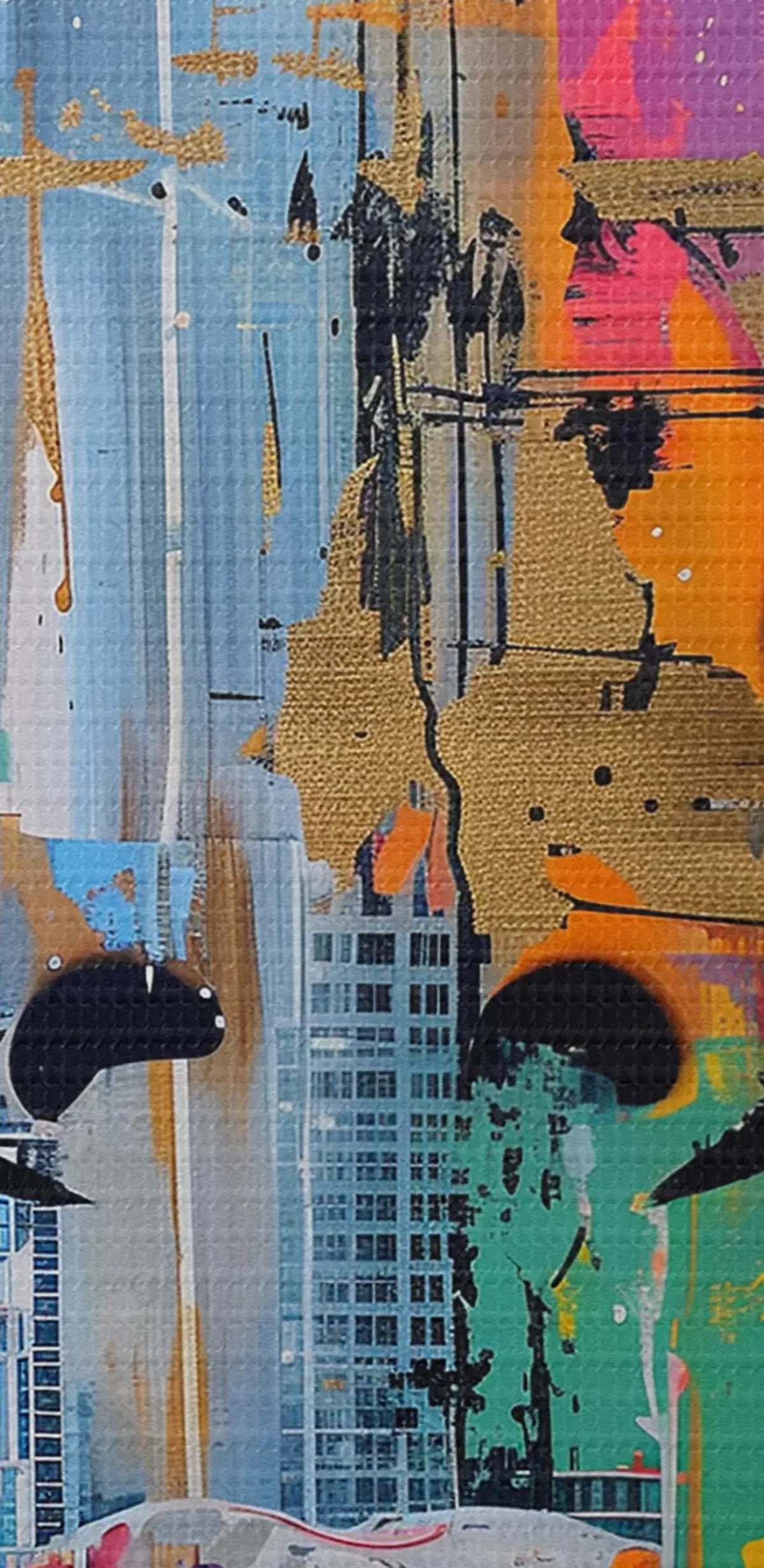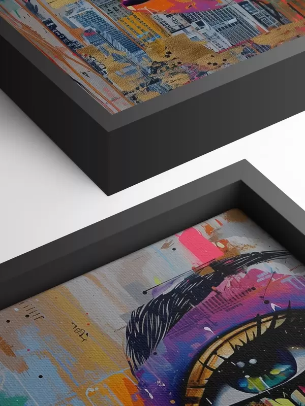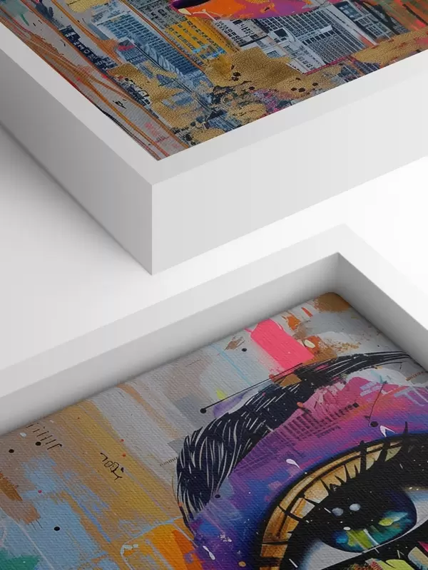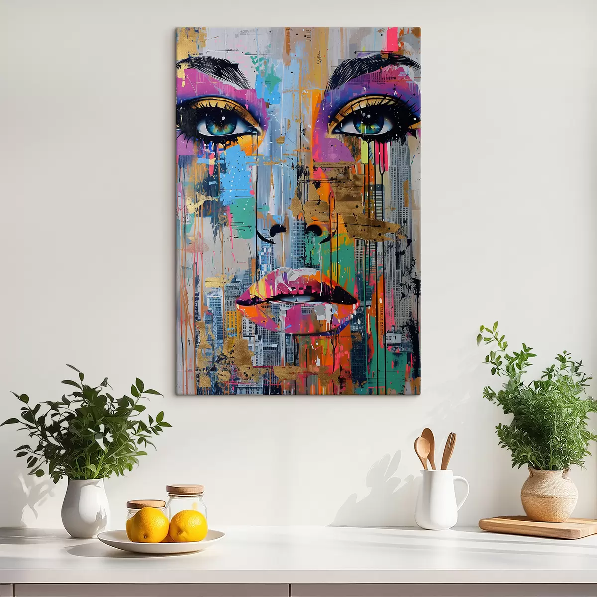 Schilderij Blauwe ogen en uitzicht op de stad Art. s39800