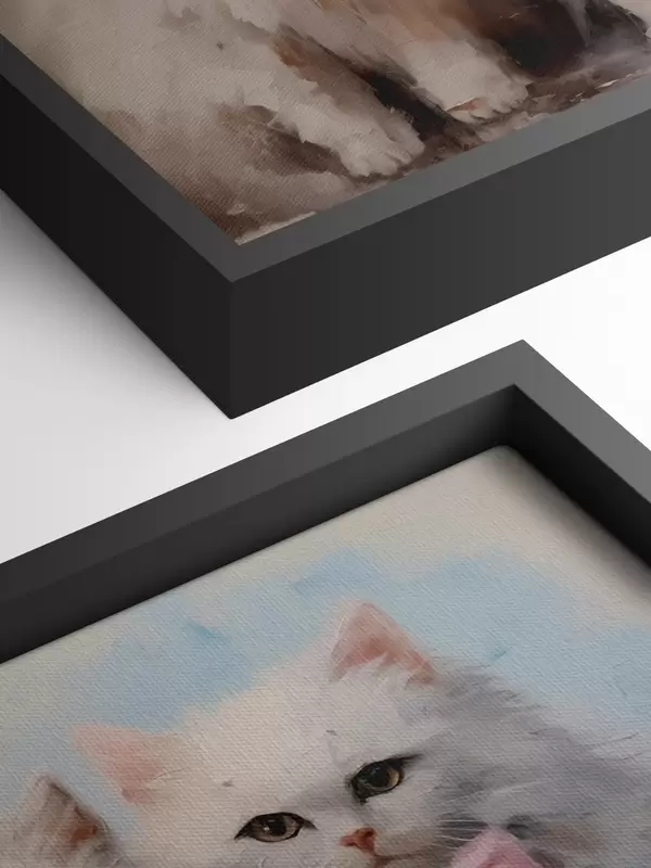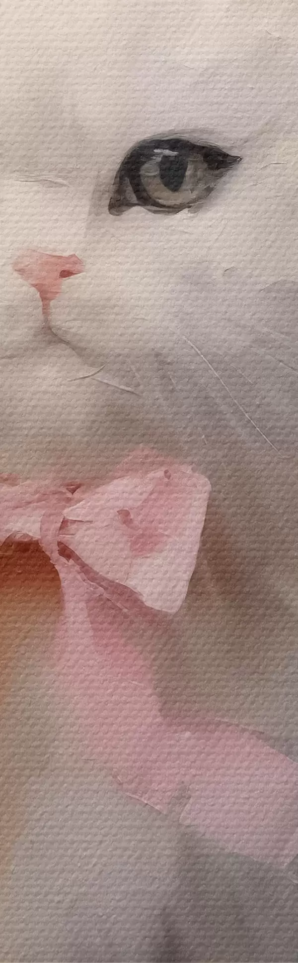 Schilderij Witte katten met roze strikken olieverfschilderij Art. s39826