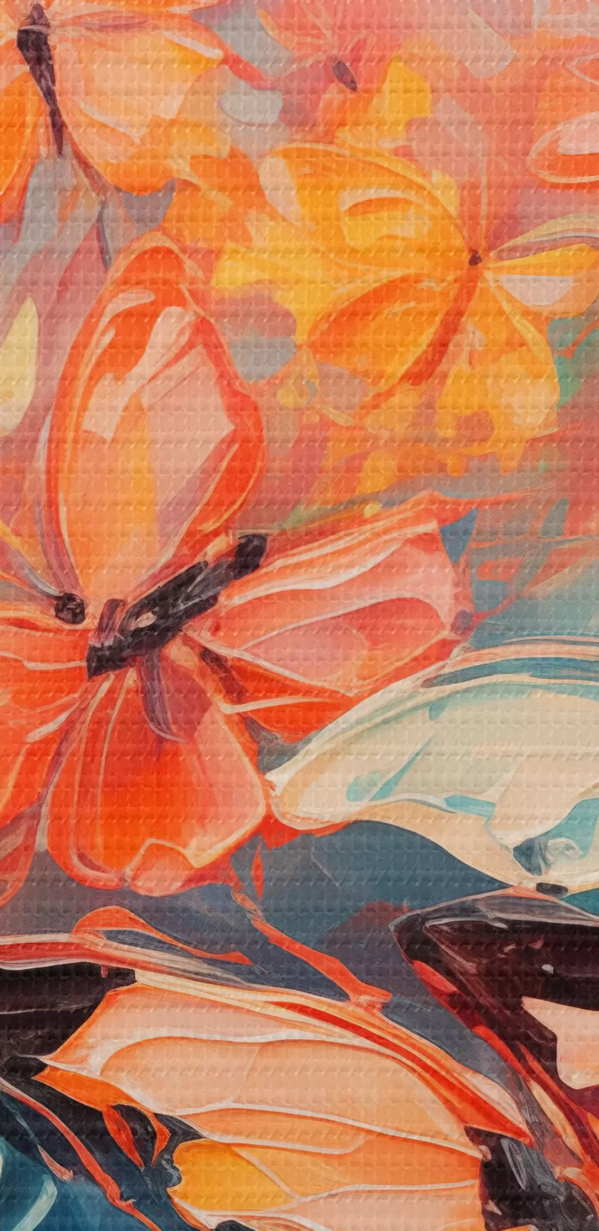 Schilderij Een zwerm vlinders vliegt op een blauw olieverfschilderij Art. s39922