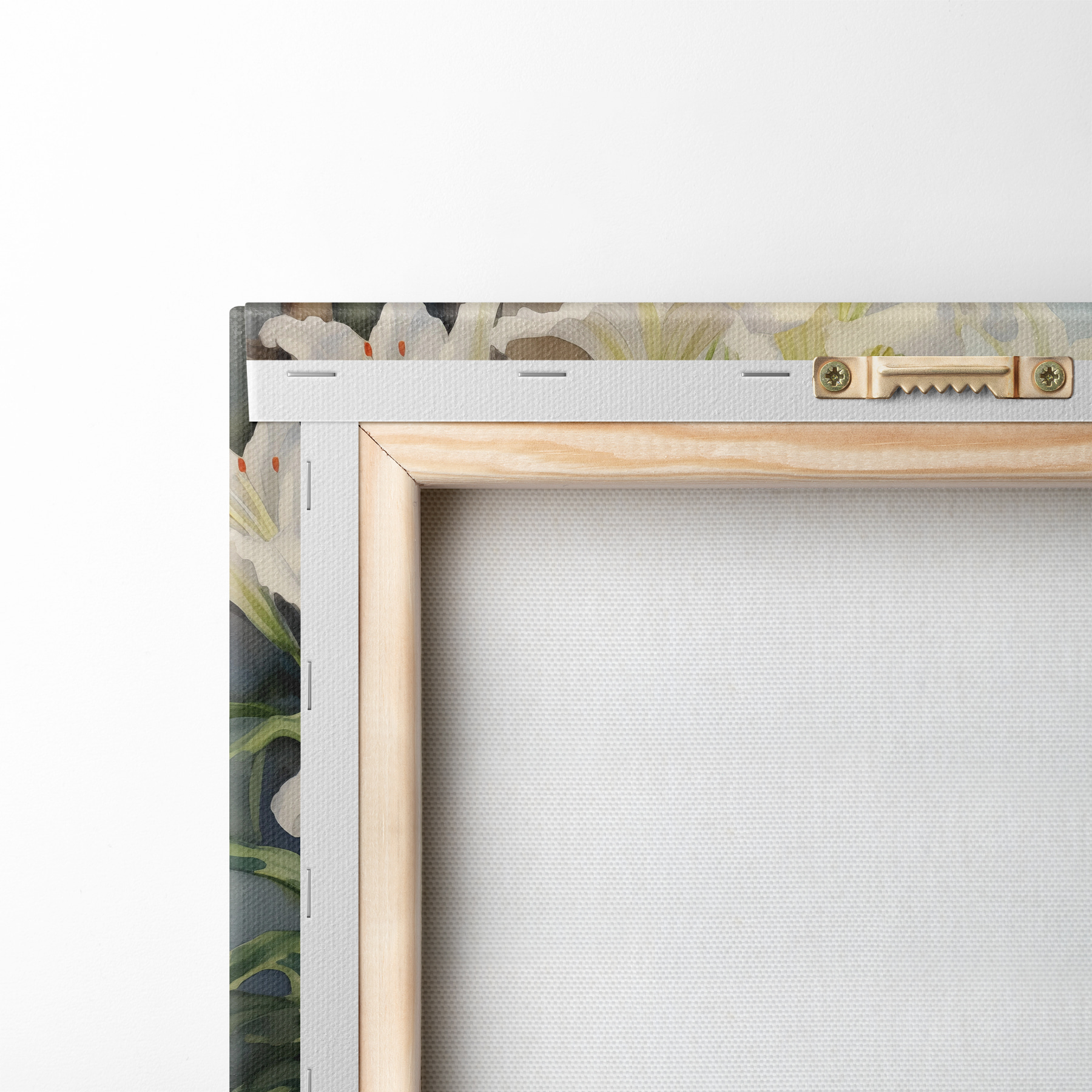 Om het doek op te spannen op spielatten zonder de afbeelding te beschadigen, gebruiken we gespiegeld beeld.