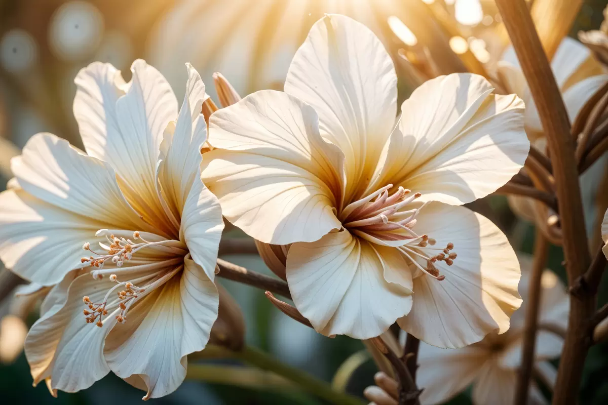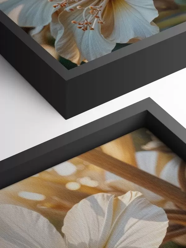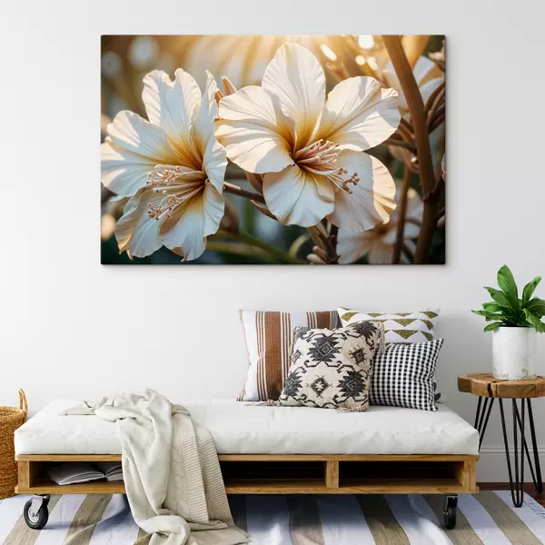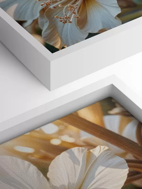 Schilderij Witte en oranje hibiscusbloemen in bloei, met zachte focusachtergrond Art. s40035