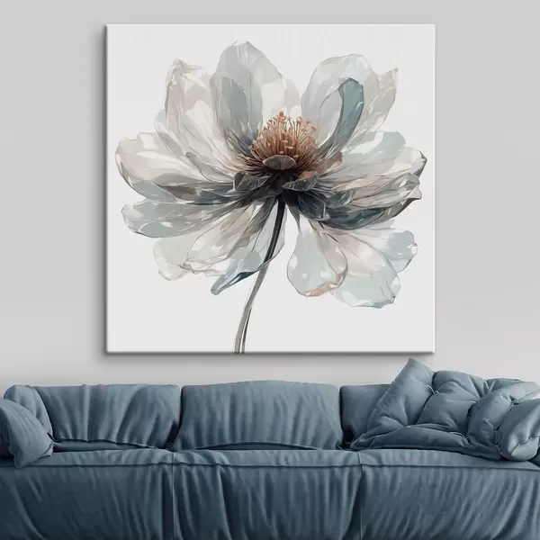 Schilderij Transparante blauwe bloem op witte achtergrond Art. s40067