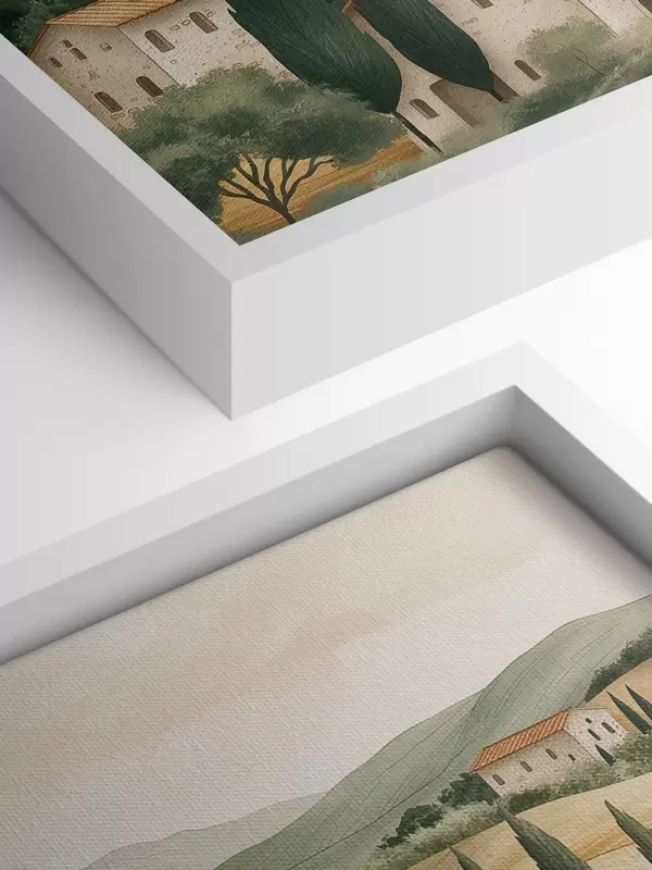 Schilderij Toscaans landschap met oude huizen, pastelkleuren, heuvels en bomen, rustiek Art. s40082