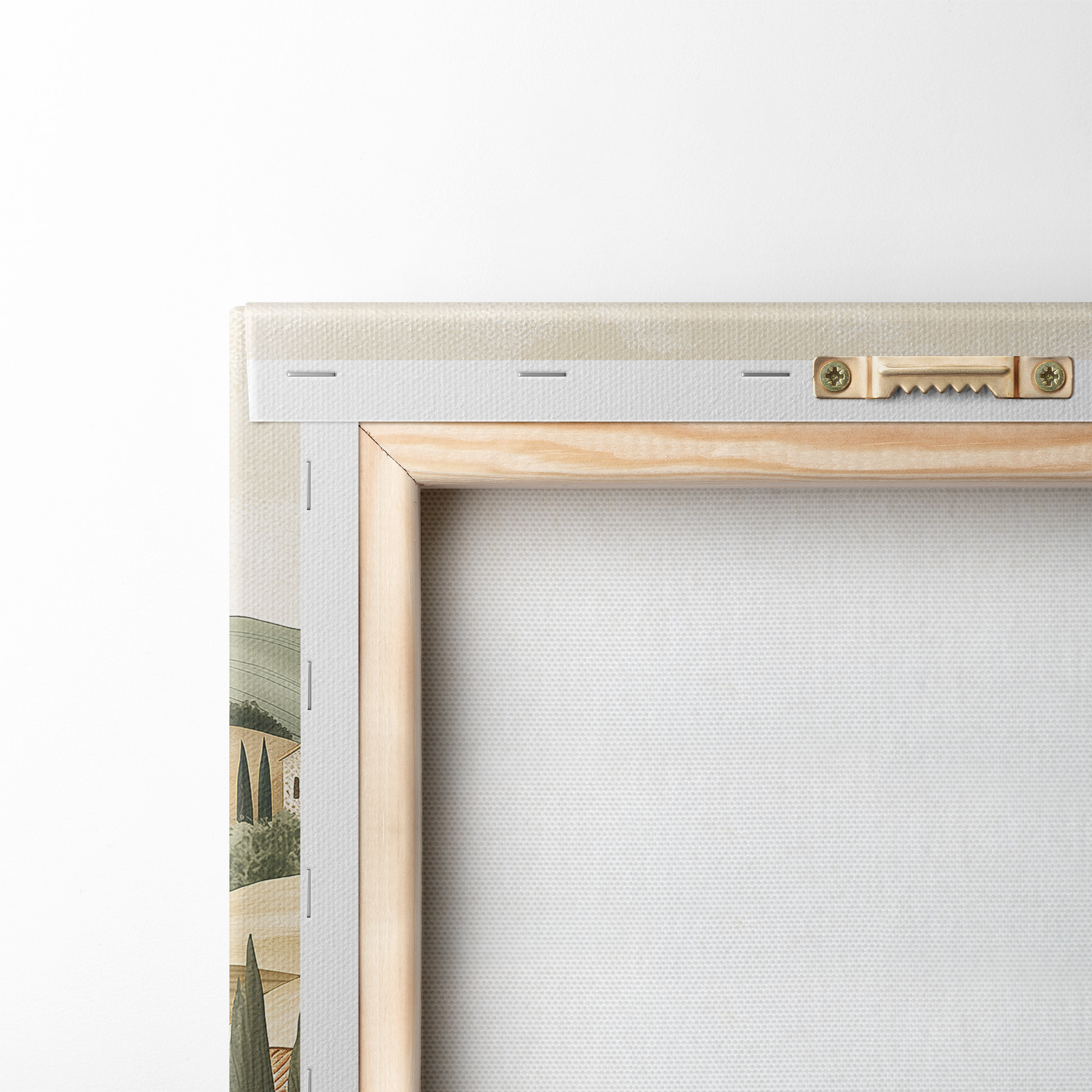 Om het doek op te spannen op spielatten zonder de afbeelding te beschadigen, gebruiken we gespiegeld beeld.