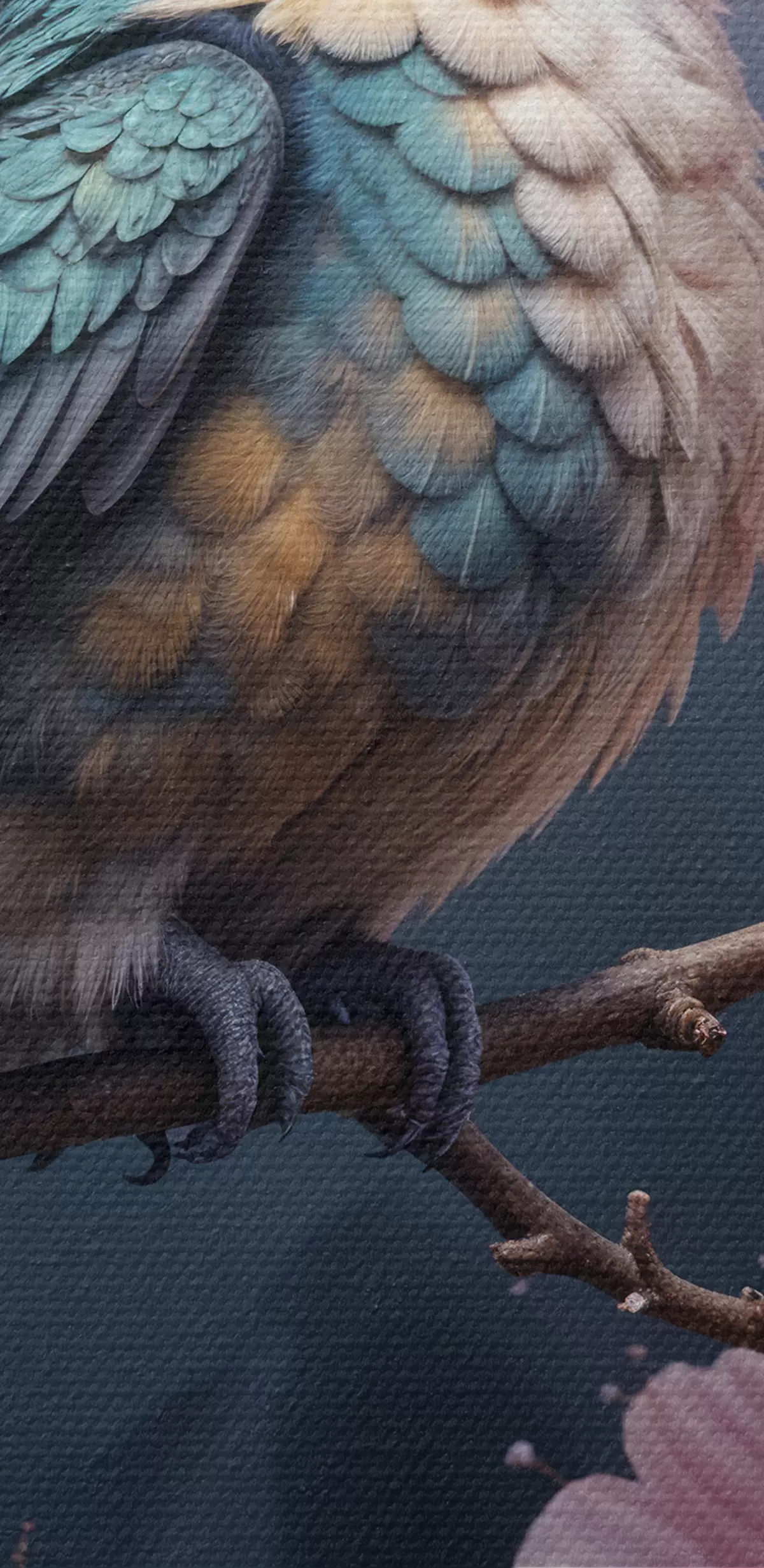 Er zijn drie soorten materiaal te bestellen: Economic Canvas - een dicht en duurzaam materiaal voor digitaal printen, identiek aan schildersdoek, waterdicht oppervlak, realistische weergave van details, materiaal met gemiddelde korrel. Premium Canvas - de textuur lijkt op die van schildersdoek (verweven kleine draden). Zachte, gedetailleerde reproductie van de afbeelding op een mat oppervlak. Eco-Premium - hoogwaardige 100% katoenen stof. Dankzij de natuurlijke katoenvezels is het materiaal duurzaam en slijtvast. Uitstekende kleurweergave en detail.
