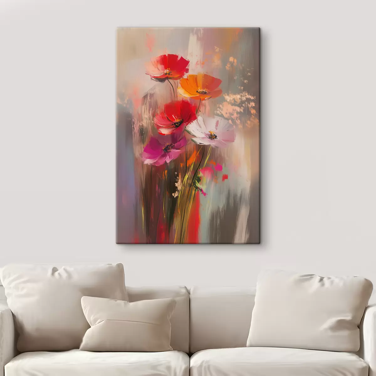 Schilderij Abstracte heldere bloemen met penseelstreken Art. s40283