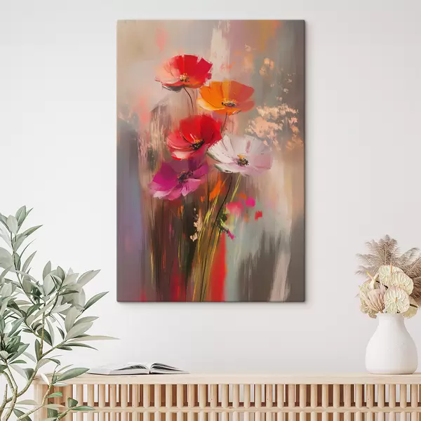 Schilderij Abstracte heldere bloemen met penseelstreken Art. s40283