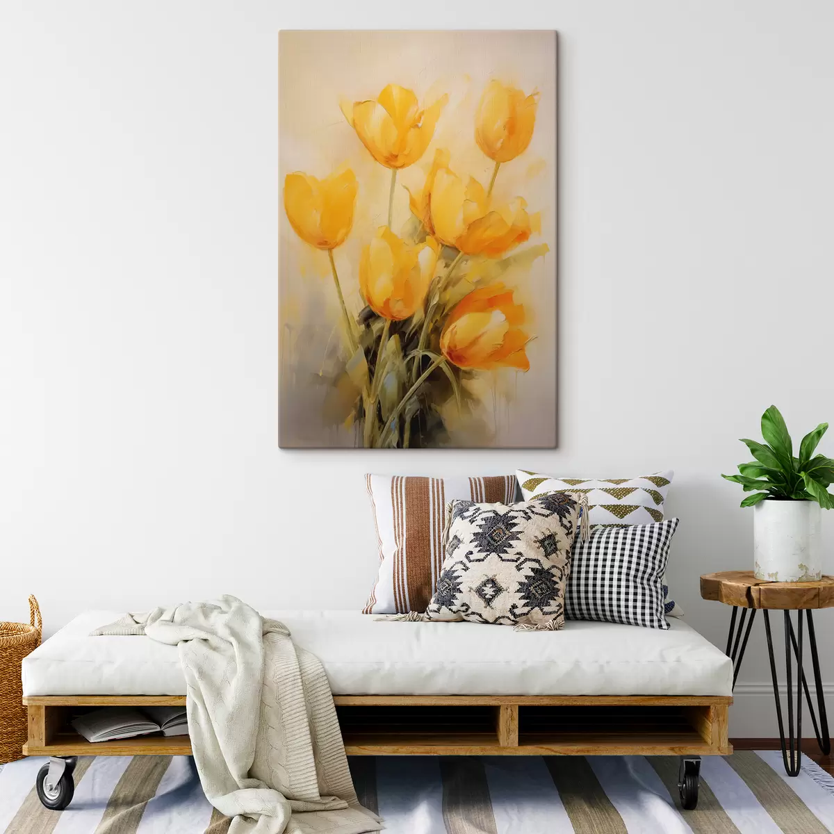 Schilderijen Gele tulpen imitatie olieverfschilderij s40318