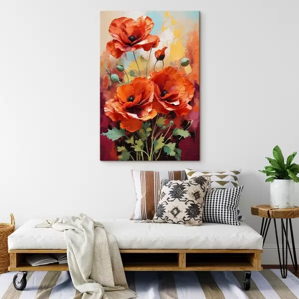 Schilderij Klaprozen op abstracte acryl achtergrond Art. s40323