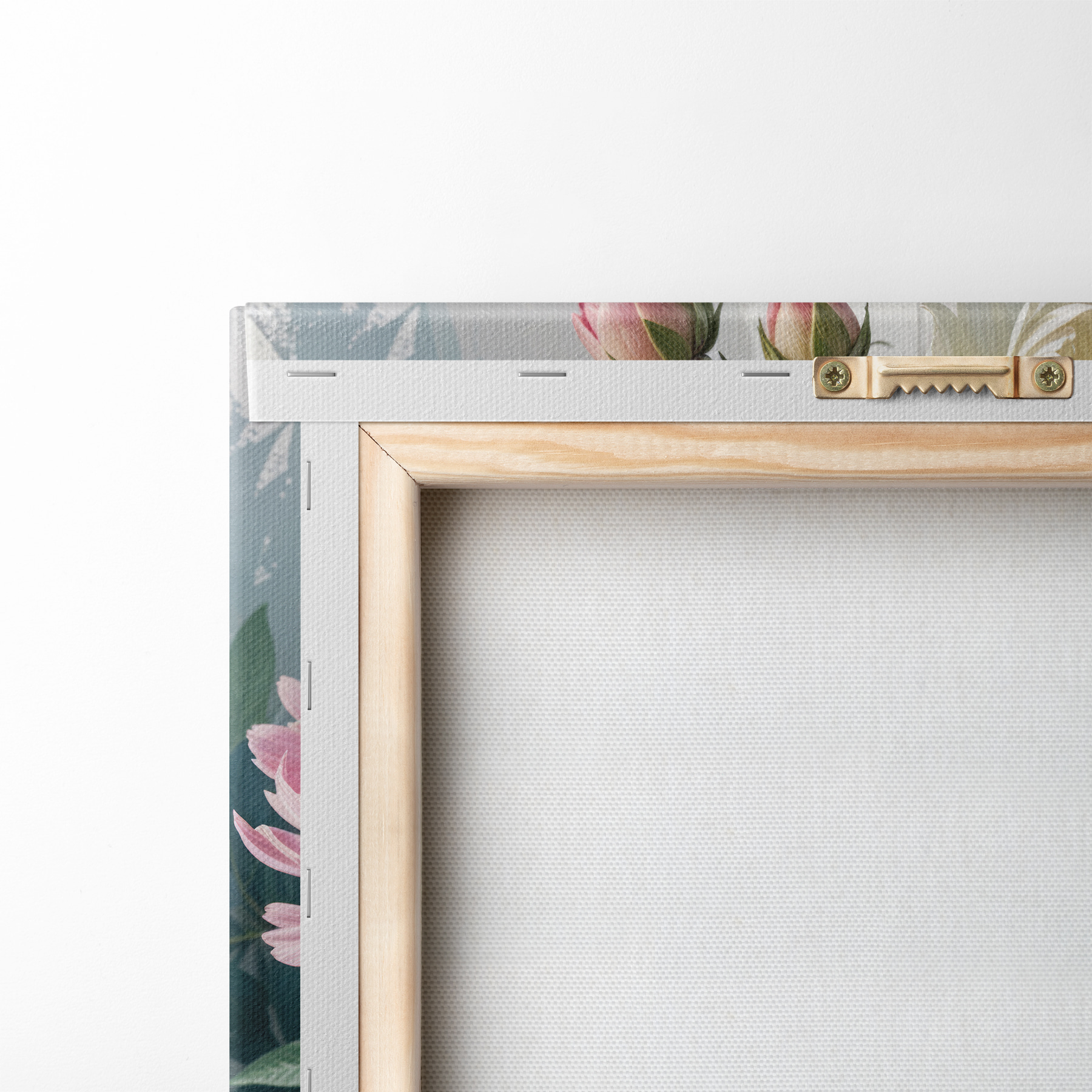 Om het doek op te spannen op spielatten zonder de afbeelding te beschadigen, gebruiken we gespiegeld beeld.