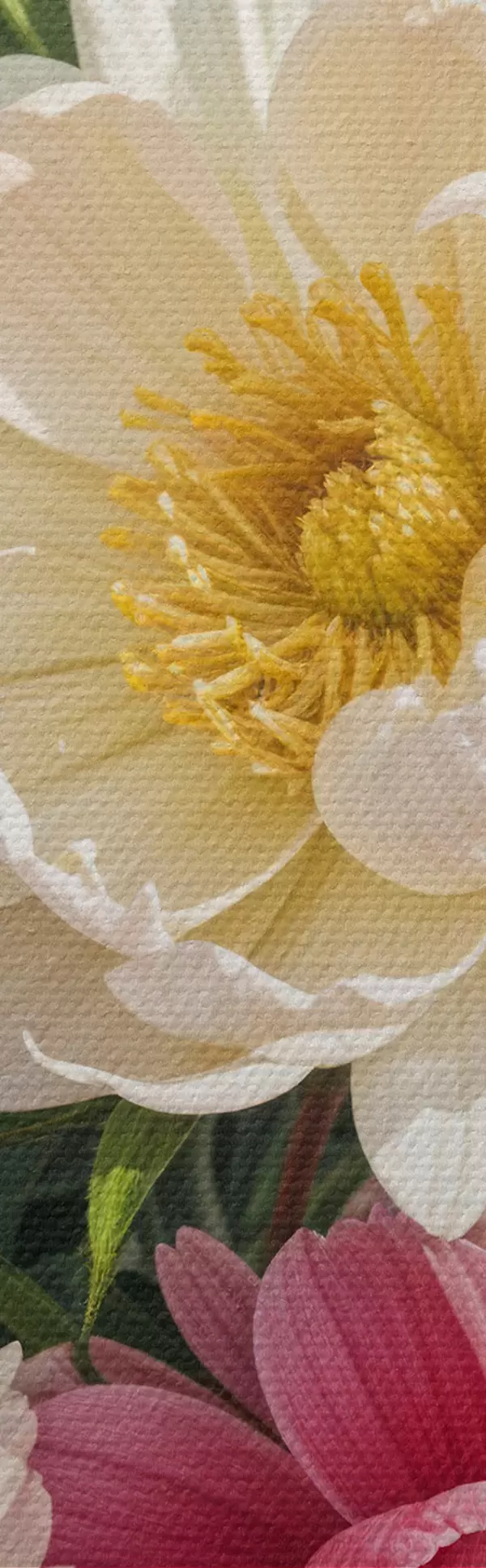 Er zijn drie soorten materiaal te bestellen: Economic Canvas - een dicht en duurzaam materiaal voor digitaal printen, identiek aan schildersdoek, waterdicht oppervlak, realistische weergave van details, materiaal met gemiddelde korrel. Premium Canvas - de textuur lijkt op die van schildersdoek (verweven kleine draden). Zachte, gedetailleerde reproductie van de afbeelding op een mat oppervlak. Eco-Premium - hoogwaardige 100% katoenen stof. Dankzij de natuurlijke katoenvezels is het materiaal duurzaam en slijtvast. Uitstekende kleurweergave en detail.