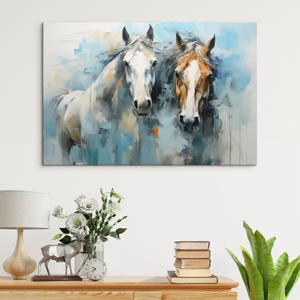 Schilderij Paarden abstract schilderij, wit, blauw, bruine kleur Art. s40493