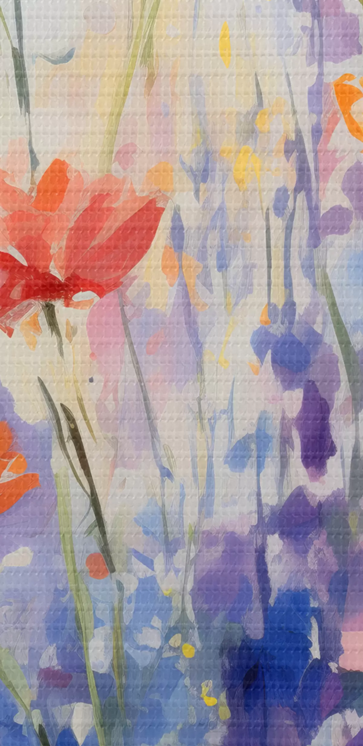 De fijne weving van draden op dit doek lijkt op het oppervlak van professionele schildersdoeken.