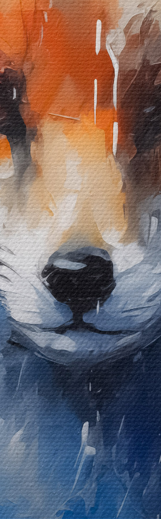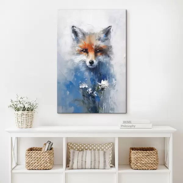 Schilderij Abstract portret van een vos in blauwe verfvlekken Art. s40524