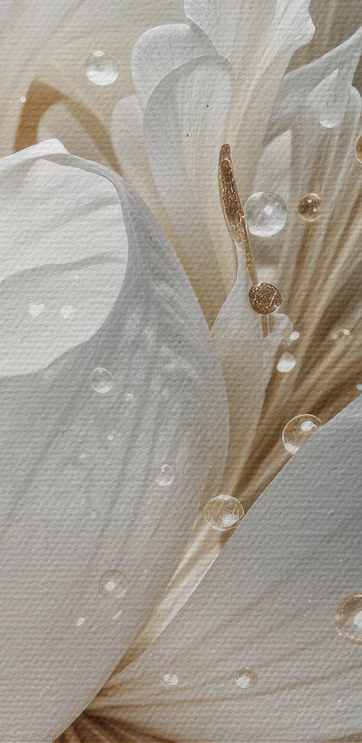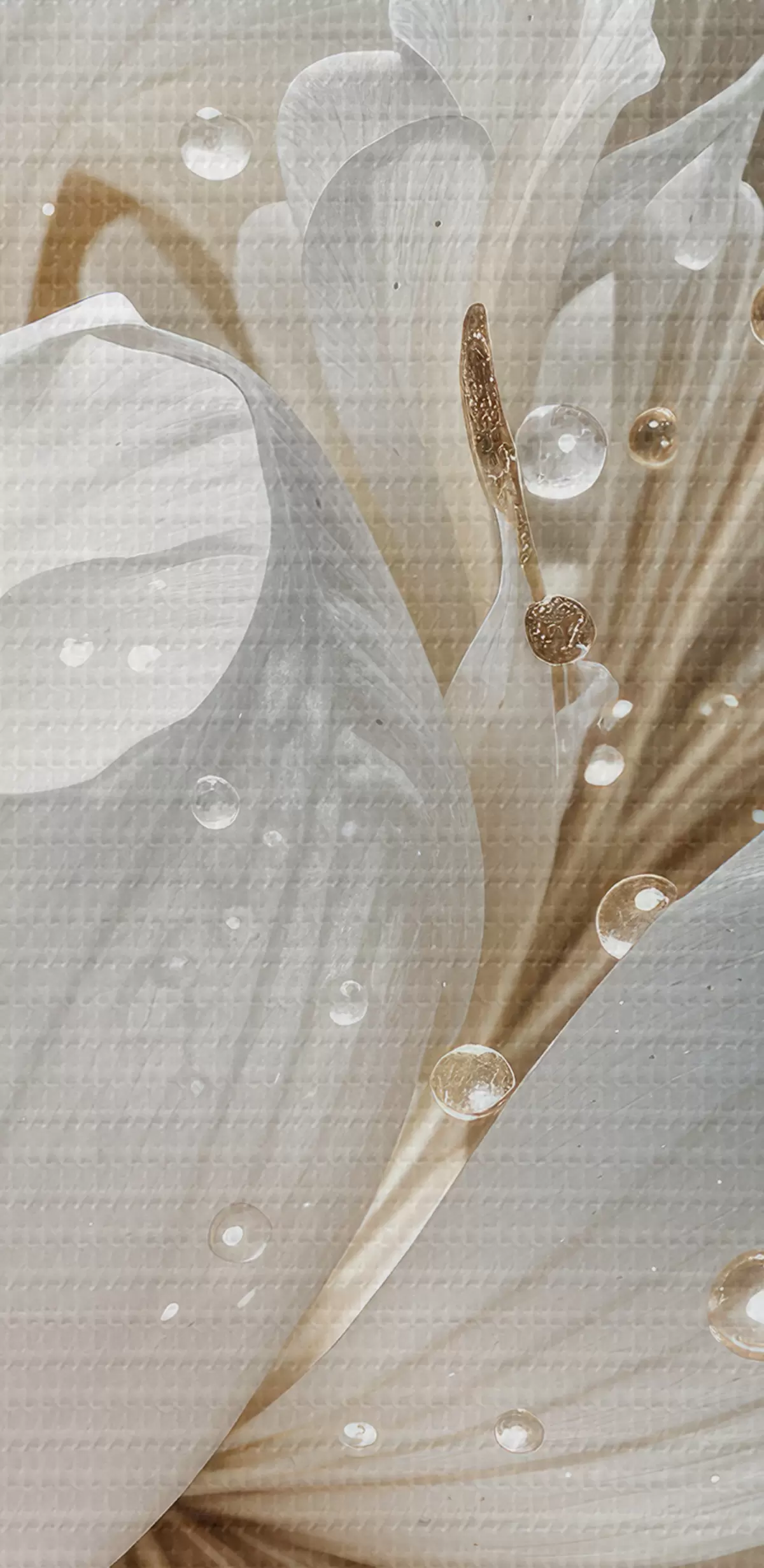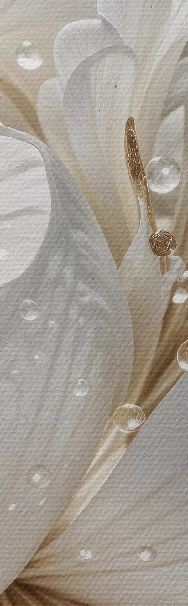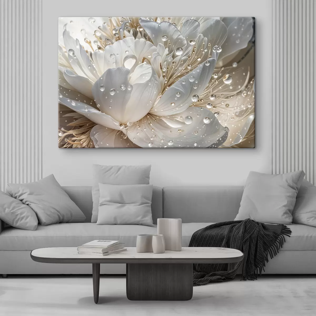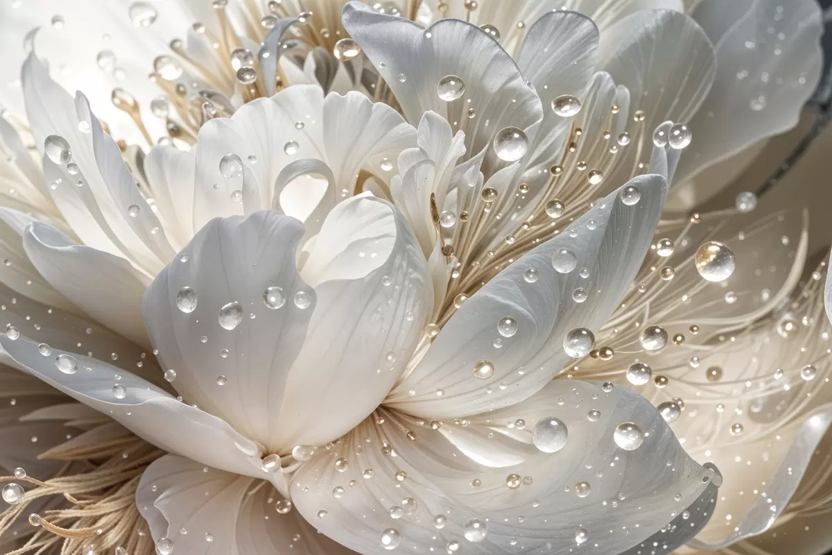 Schilderij Een close-up van een witte pioenroos met waterdruppels op de bloemblaadjes, tegen een wazige achtergrond Art. s40539
