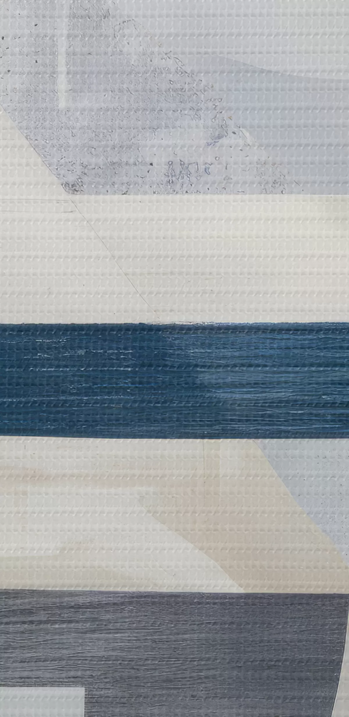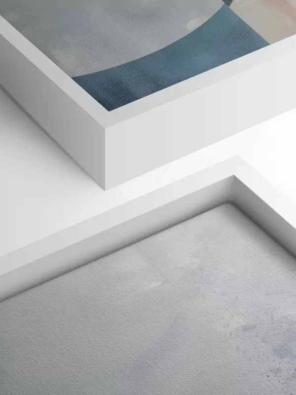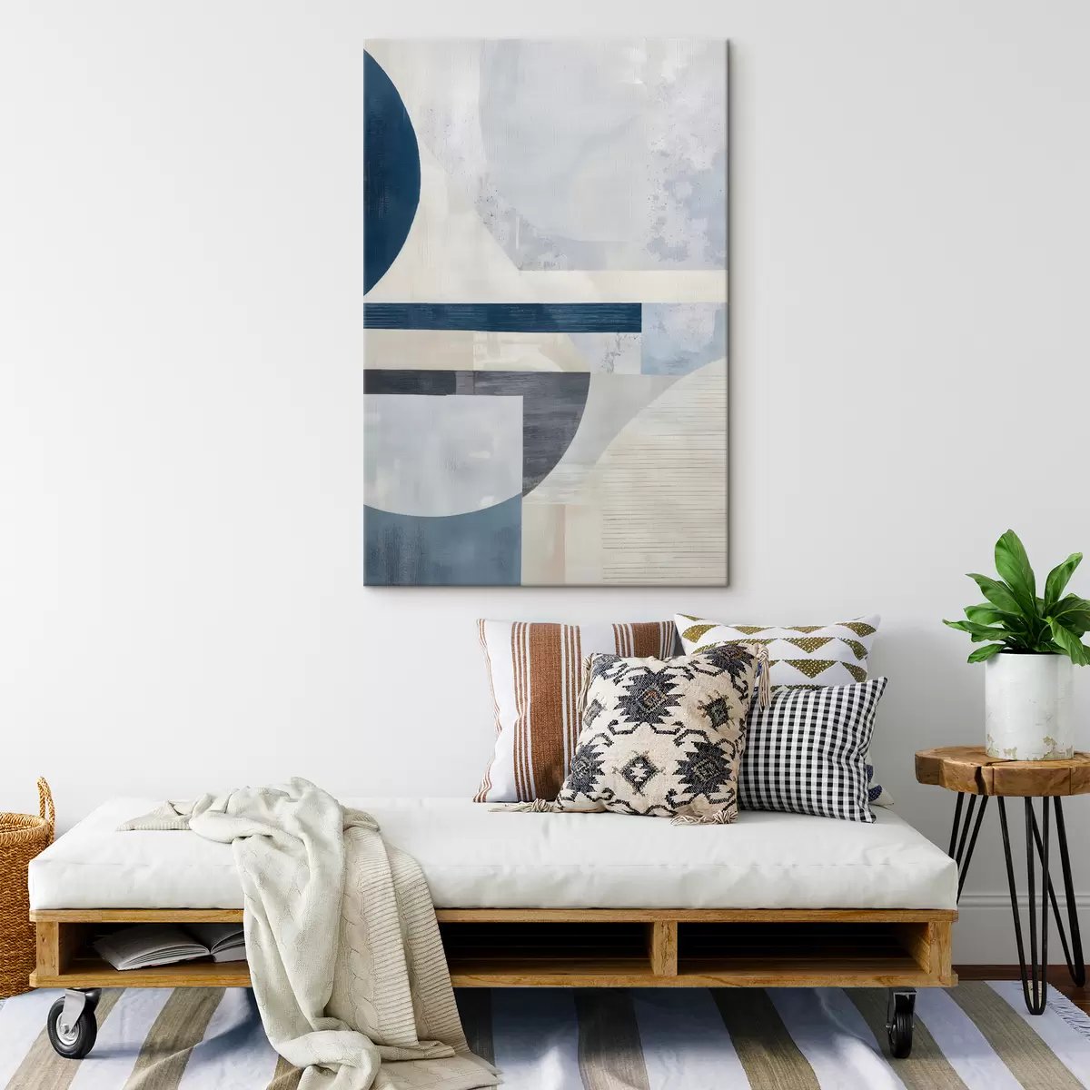 Schilderij Een minimalistische abstractie met geometrische vormen en texturen in blauw-, grijs- en wittinten Art. s40596