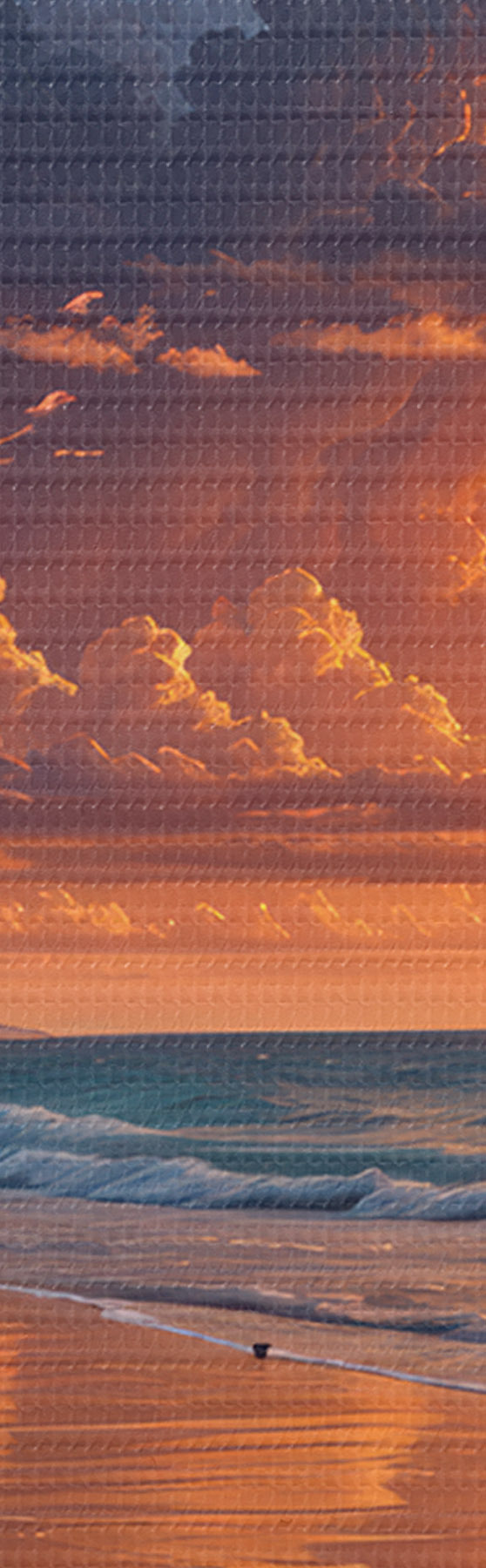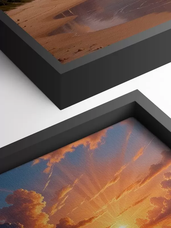 Schilderij Een dramatische zonsondergang boven een tropisch strand, met levendige oranje en roze wolken die weerspiegeld worden in het kalme water Art. s40599