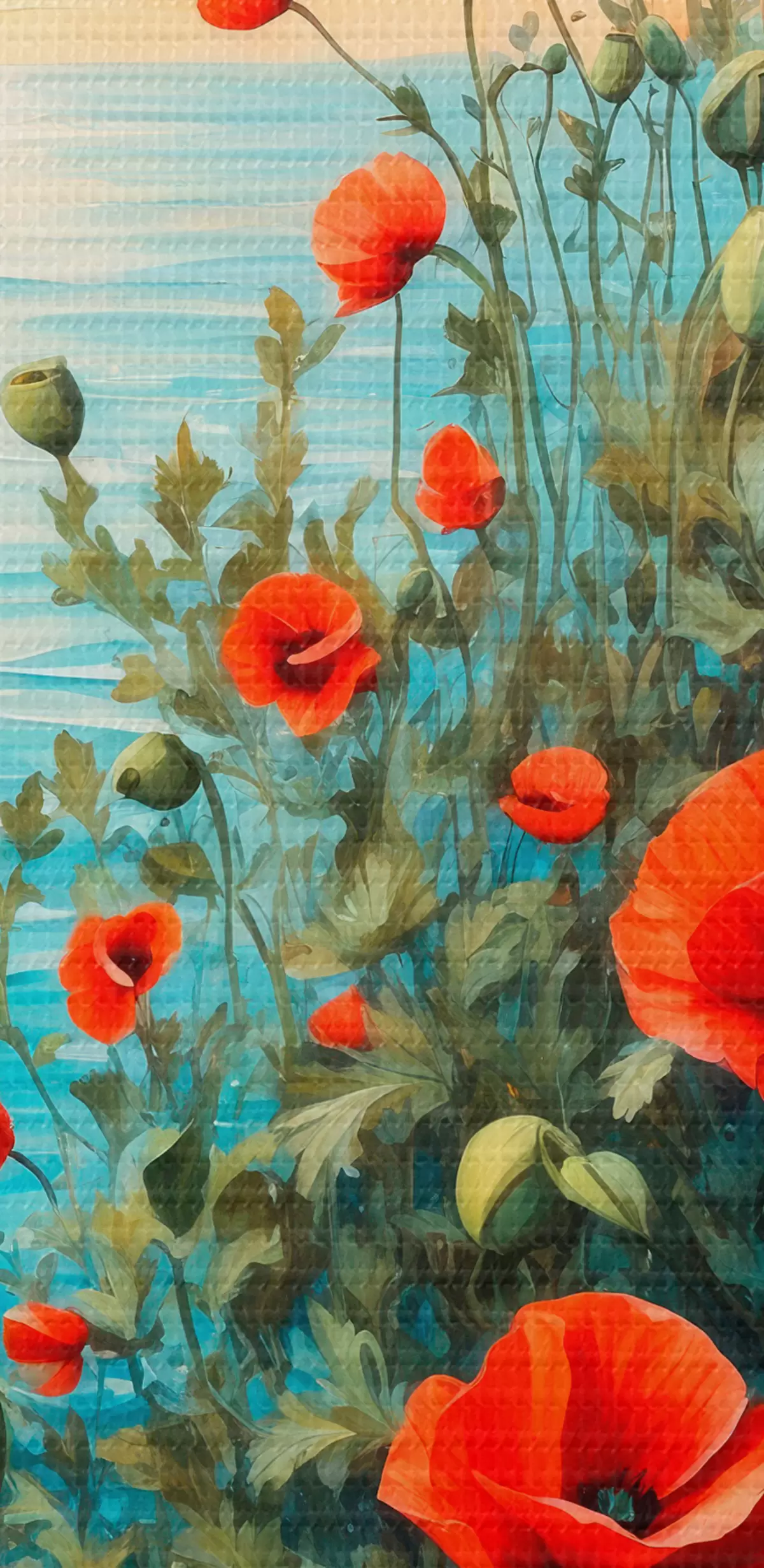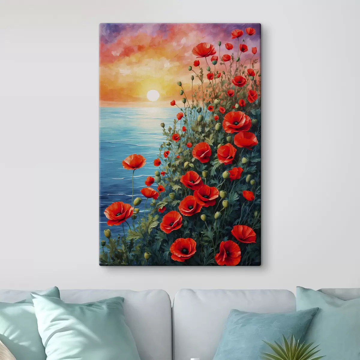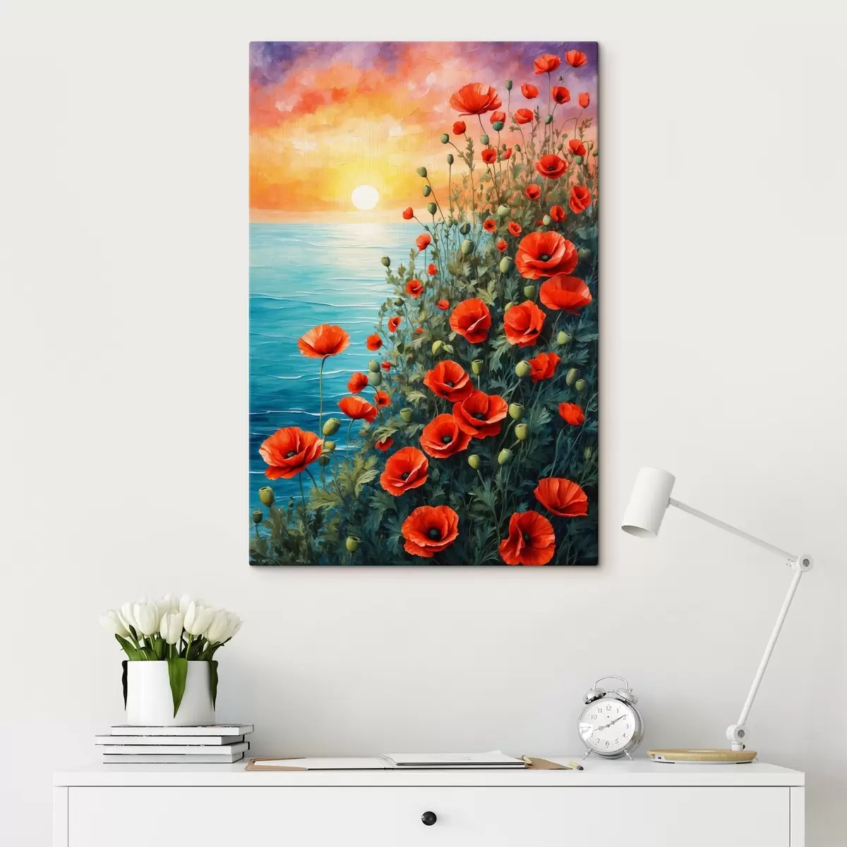 Schilderij Bloeiende klaprozen op de zee achtergrond Art. s40637