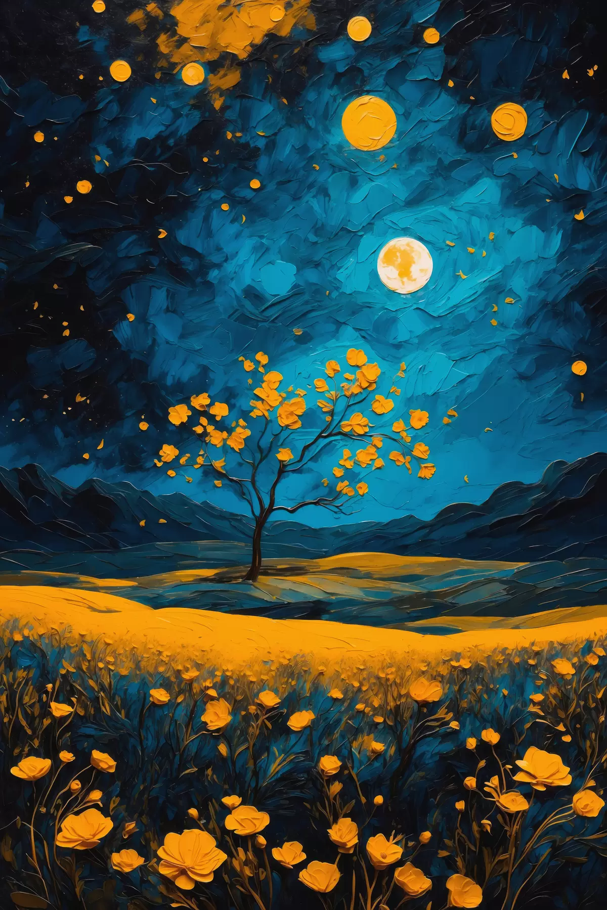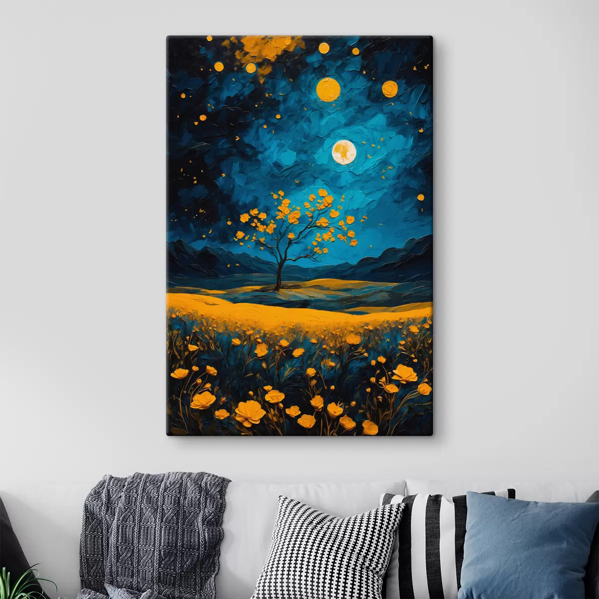Schilderij Veld met gele bloemen bij nacht Art. s40643