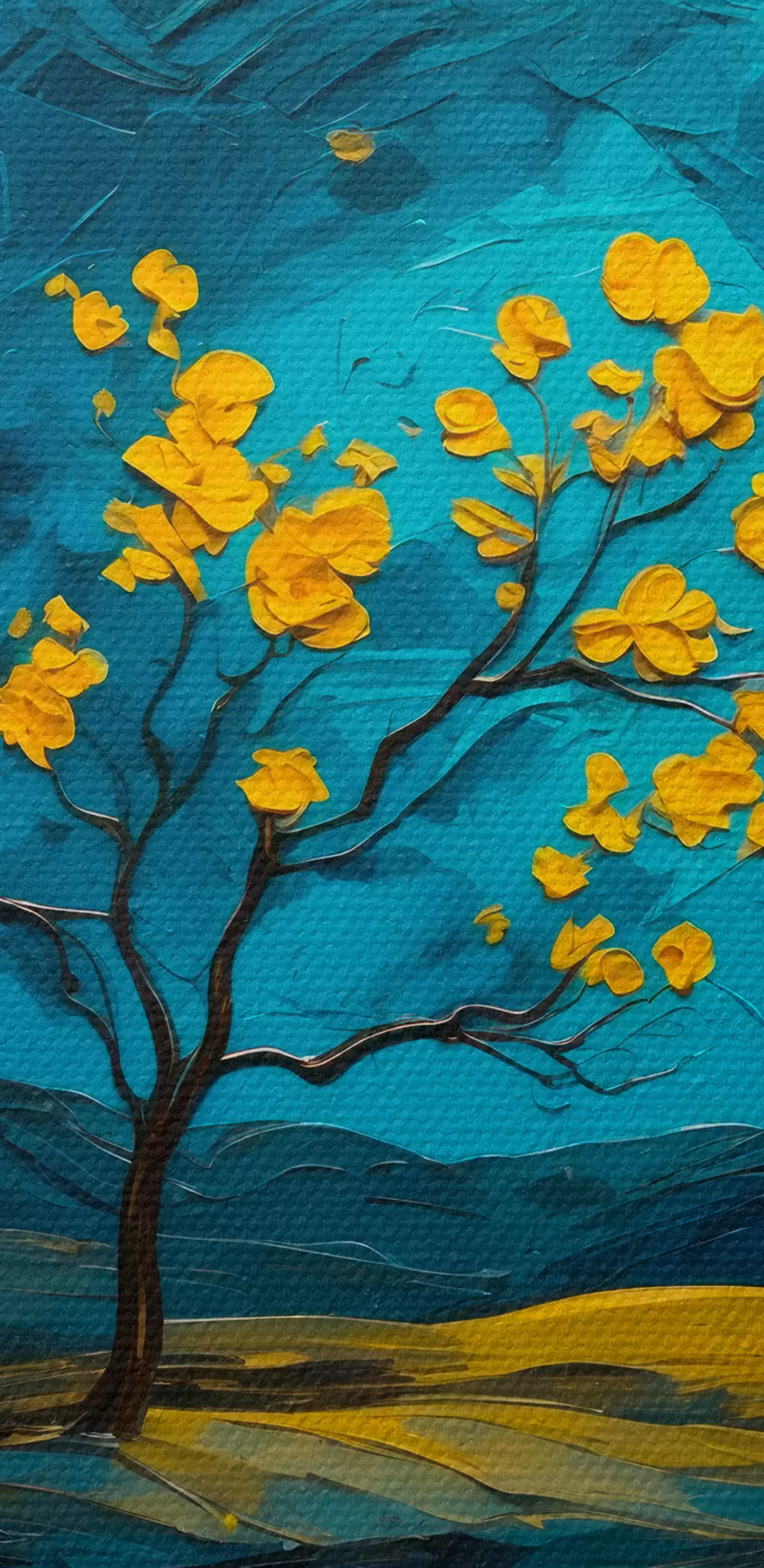 Het schilderij kan direct na ontvangst worden opgehangen. Het schilderij wordt opgespannen op een 2 cm breed houten spieraam.