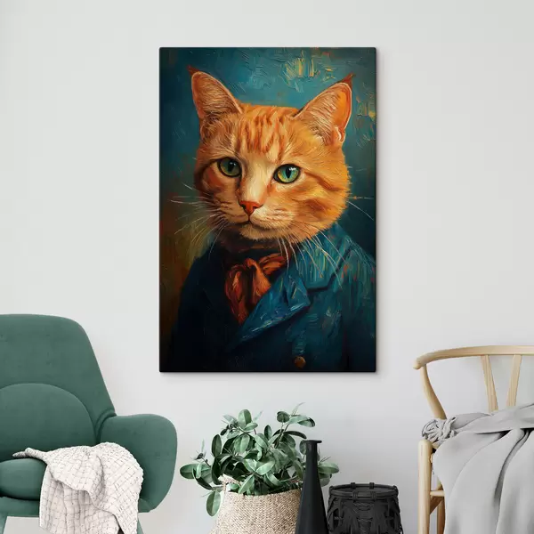 Schilderij Rode kat in een pak in de stijl van een Van Gogh-portret Art. s40647