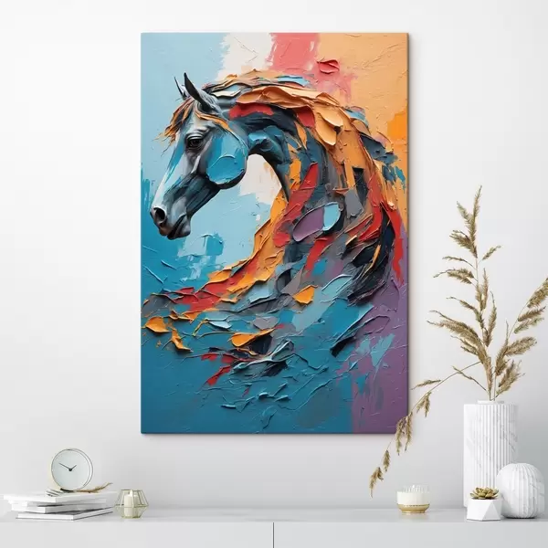 Het schilderij kan direct na ontvangst worden opgehangen. Het schilderij wordt opgespannen op een 2 cm breed houten spieraam.