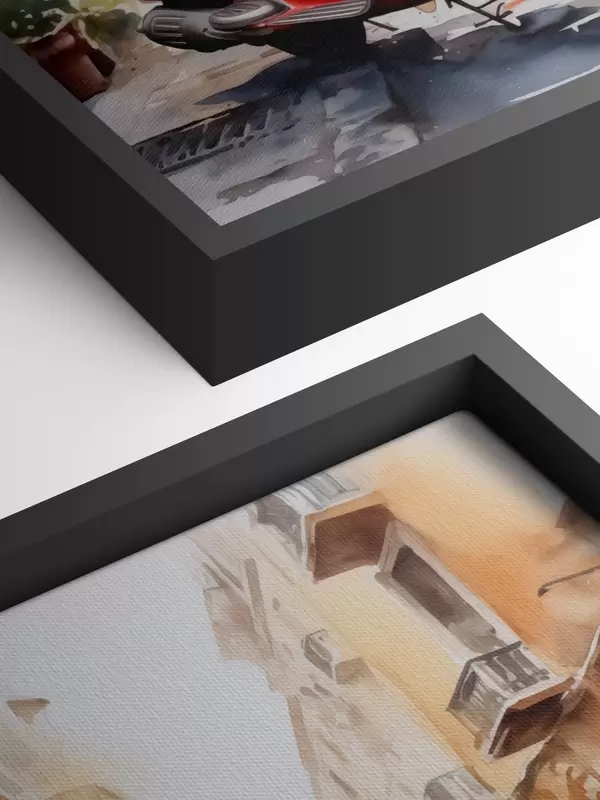 Schilderij Rode motorfiets op straat in Rome aquarel Art. s40728