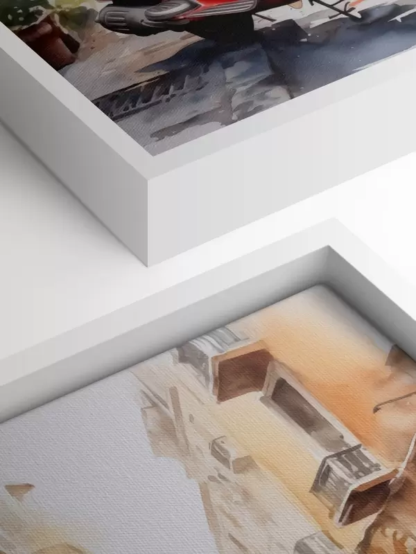 Er zijn drie soorten materiaal te bestellen: Economic Canvas - een dicht en duurzaam materiaal voor digitaal printen, identiek aan schildersdoek, waterdicht oppervlak, realistische weergave van details, materiaal met gemiddelde korrel. Premium Canvas - de textuur lijkt op die van schildersdoek (verweven kleine draden). Zachte, gedetailleerde reproductie van de afbeelding op een mat oppervlak. Eco-Premium - hoogwaardige 100% katoenen stof. Dankzij de natuurlijke katoenvezels is het materiaal duurzaam en slijtvast. Uitstekende kleurweergave en detail.