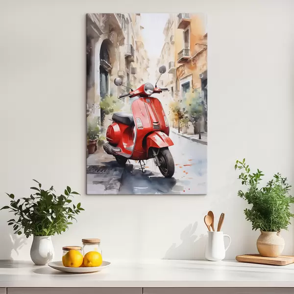 Schilderij Rode motorfiets op straat in Rome aquarel Art. s40728