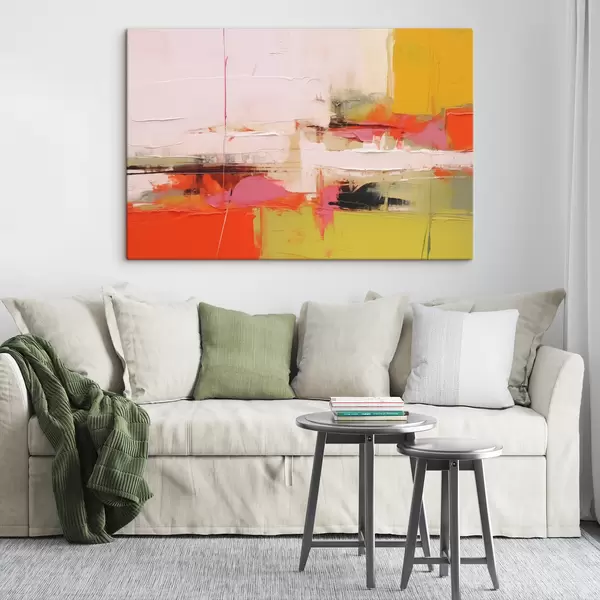 Schilderij Abstracte verfstreken, rode, gele, groene, oranje kleur Art. s40747