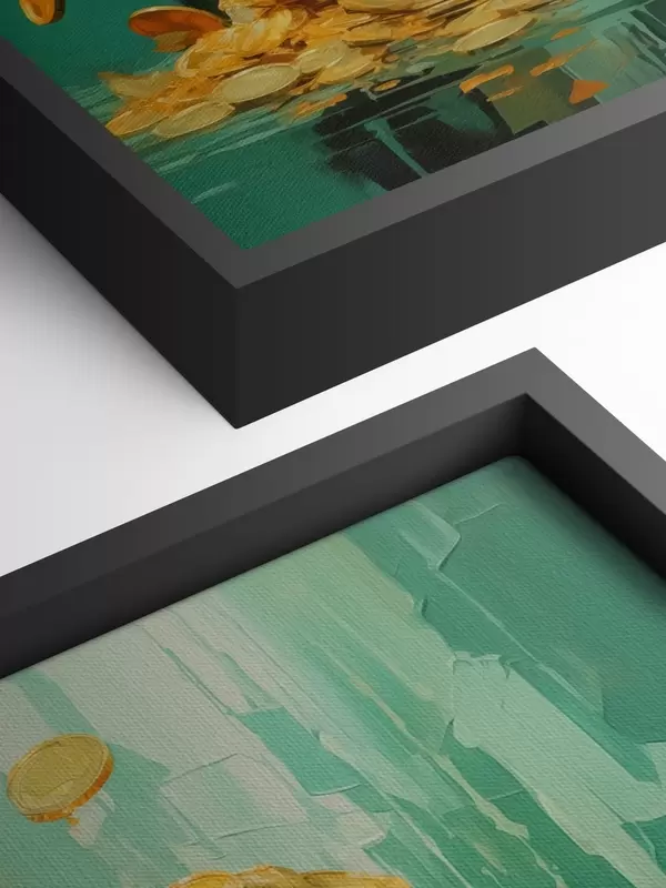Schilderij Abstract schilderij van een man omringd door munten Art. s40755