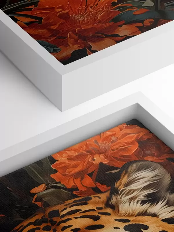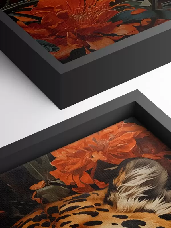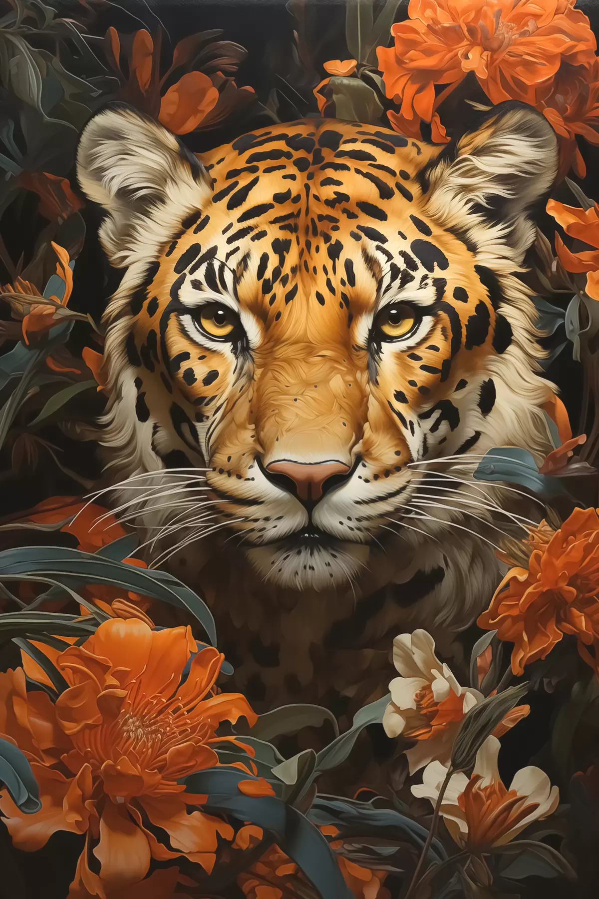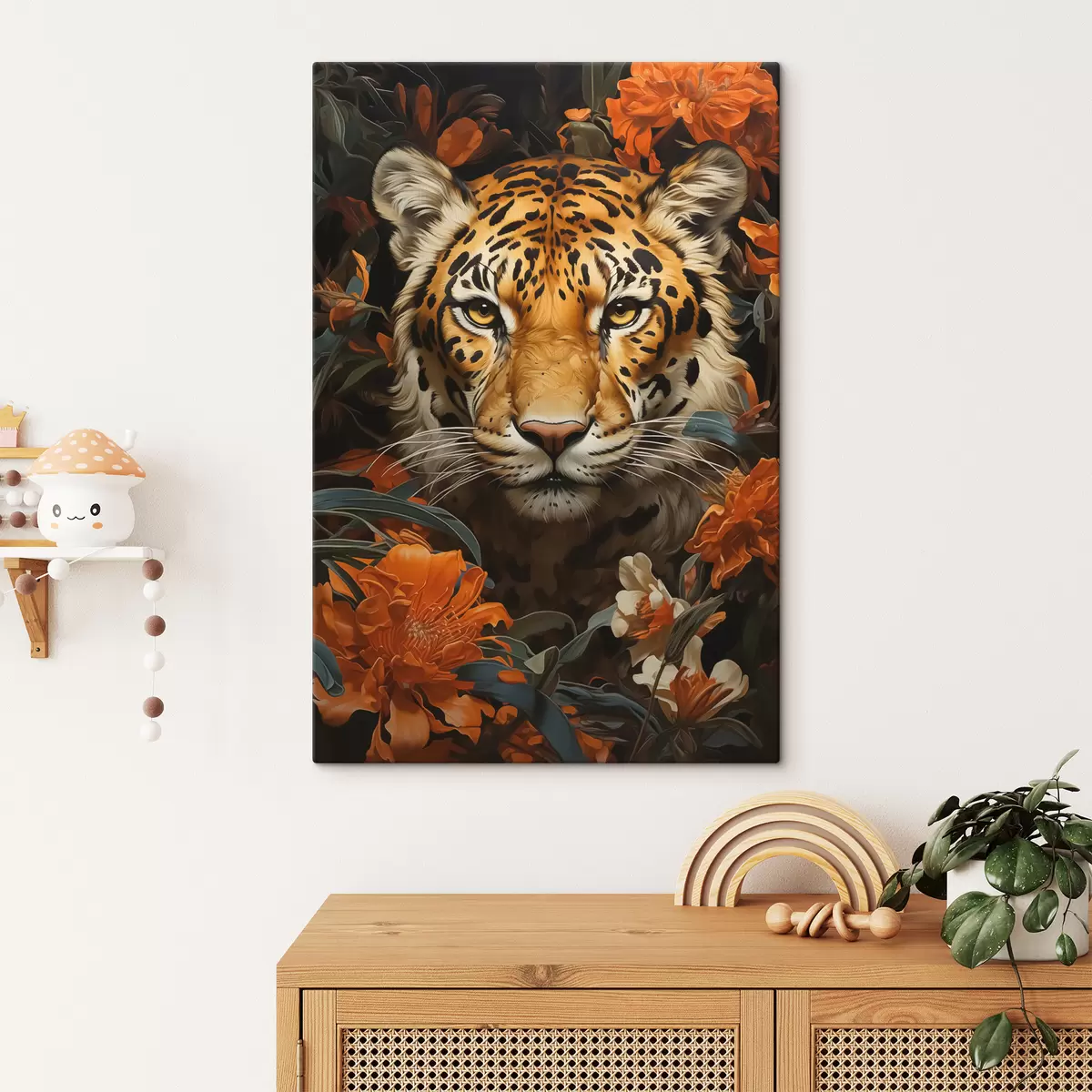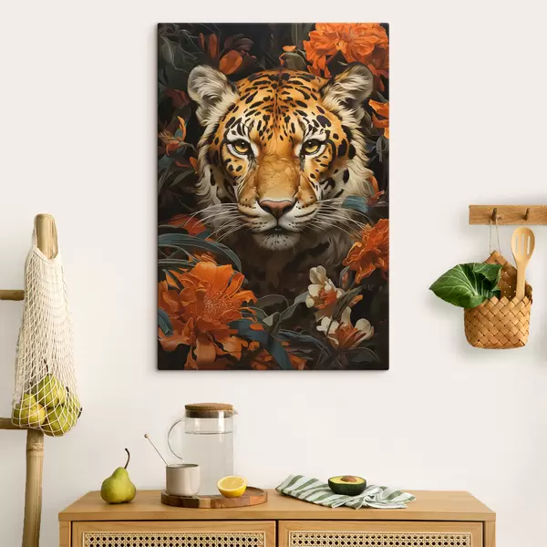 Schilderij Portret van een tijger omringd door tropische bloemen Art. s40757