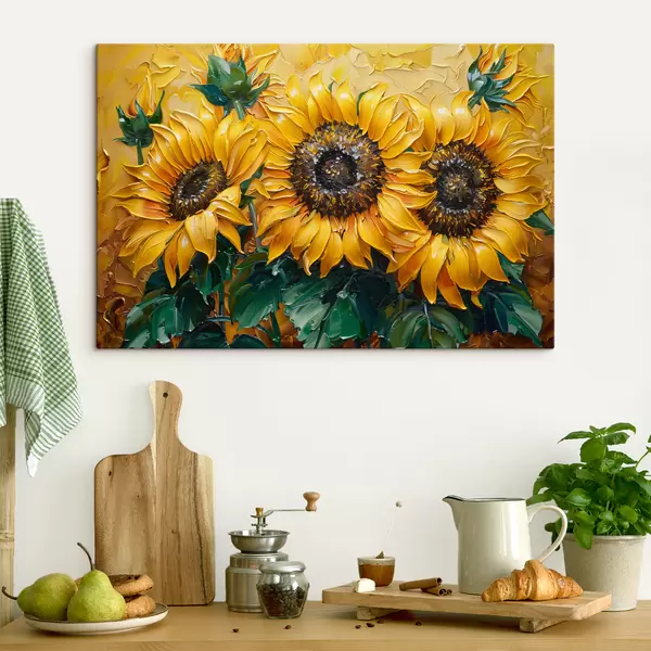 Schilderijen Heldere zonnebloemen,olieverf s40787