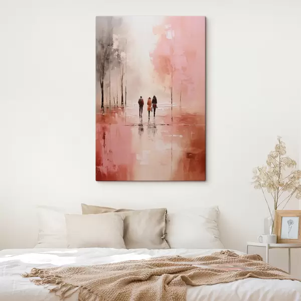 Schilderij Mensen wandelen in het park abstract, roze rode kleur Art. s40802